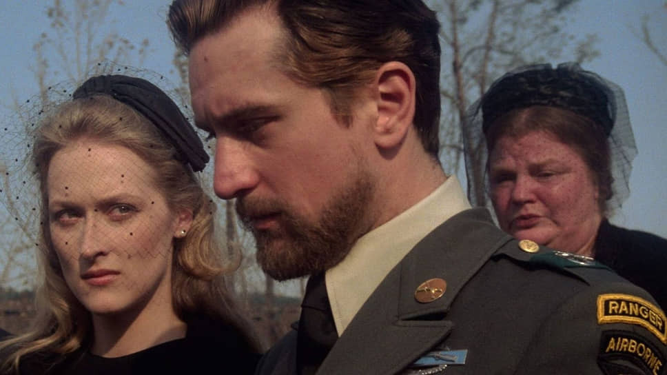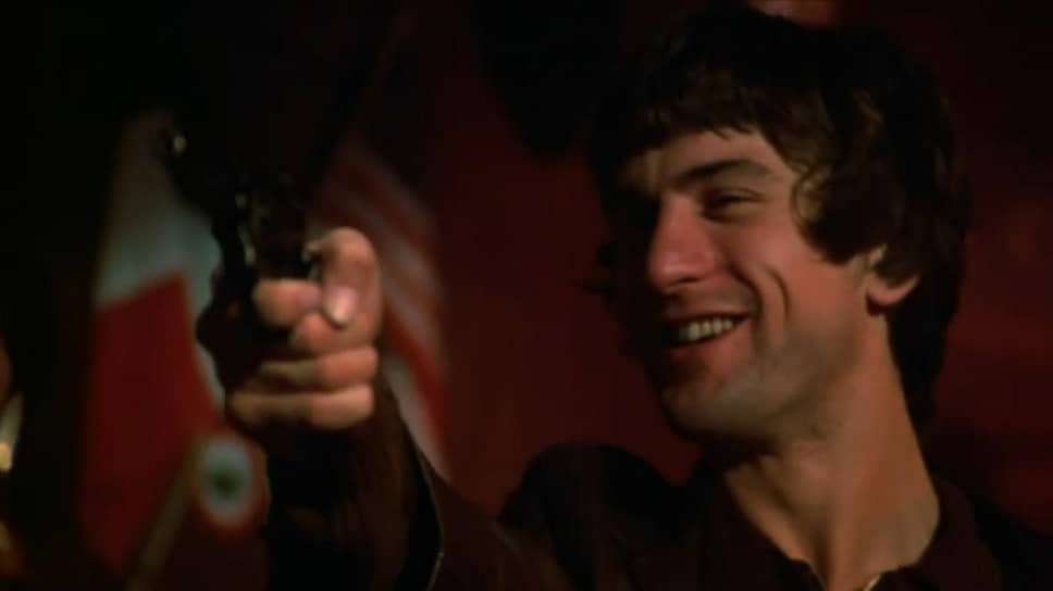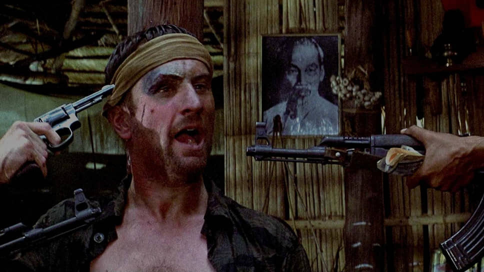 Три года спустя Де Ниро снимется у Майкла Чимино в «Охотнике на оленей», еще одной картине про Вьетнам, получившей пять «Оскаров», в том числе за лучший фильм, но на этот раз ему придется воевать в кадре не только с самим собой, но и с вьетконговцами. Майкл Вронски с друзьями — такими же выходцами в третьем поколении из России Ником Чеботаревичем (Кристофер Уокен) и Стивеном Пушковым (Джон Сэвидж) — работают в пенсильванской глуши, в крохотном городе Клэртон на сталелитейном заводе, по выходным охотятся в горах, влюбляются в местных красоток, в общем, ведут типичную для молодых американцев жизнь, однако, движимые патриотизмом, полагая, что эта война — их война, записываются добровольцами в армию. Накануне отправки во Вьетнам они празднуют свадьбу Стивена и встречают только что приехавшего с передовой, тот в ответ на их бравурные тосты за победу лишь бормочет себе под нос проклятия. Почти сразу становится понятно, что только Вронски имеет право на мальчишеский апломб, с которым компания задирает судьбу, только Майкл готов сыграть в русскую рулетку с заряженным боевыми патронами револьвером. У Чимино Де Ниро — абсолютная противоположность Трэвиса. Да, побывав на фронте, он осознает, что есть смерть, поэтому уже не может застрелить оленя, пойманного на прицел. Но война для него в первую очередь тяжелая работа, выполненная безупречно. Кровь и пот, но не слезы. Выжив, он снова, как и в начале, поет за барной стойкой — правда, не шлягер Фрэнка Валли «Can’t Take My Eyes Off You», а «God bless America», словно поминальную молитву по друзьям, оставшимся лежать во вьетнамских джунглях. По лицу Де Ниро видно, что смерть товарищей на его совести, он жив, но эта вина не позволит ему жить.
