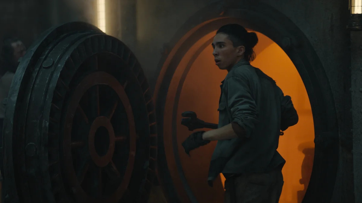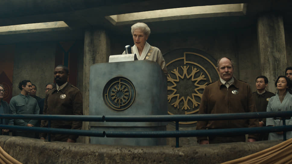 Социальная жизнь в Укрытии устроена просто: низшая каста живет на нижних уровнях, обслуживает генератор и мусорные отсеки. Управляет бункером элита с верхних этажей — власть законников и инженерно-технический отдел, возглавляемый заносчивым мужчиной Холландом (Тим Роббинс). У среднего класса со средних этажей есть мэр, благообразная седая женщина, которую переизбирают сорок лет подряд как воплощение стабильности, и шериф, энергичный Холстон (Дэвид Ойелоу). Но это еще не все — у законников есть собственная гвардия под предводительством угрюмого Симса в чекистской кожаной куртке (рэпер Коммон), зловещая физиономия которого не обещает отребью поблажек. Гвардия контролирует репродуктивность, разрешая некоторым парам раз в несколько лет иметь детей, и следит, чтобы люди не владели «реликвиями» — вещами из прошлой жизни вроде старых игрушек, книг и железяк, назначения которых нынешние могут и не знать. Самое страшное наказание в бункере — выдворение наружу, на обезлюдевшую мертвую землю, которую обитатели видят сквозь вечно грязные оконные линзы: даже в скафандре там нельзя прожить дольше пары минут.