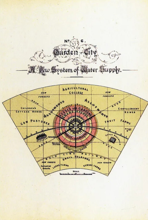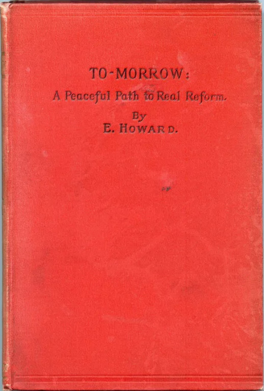 В 1898 году Эбенизер Говард опубликовал брошюру «Будущее: мирный путь к реальным реформам» («To-Morrow: A Peaceful Path To Real Reform») и через четыре года переиздал ее под названием «Города-сады будущего» («Garden Cities Of To-Morrow»). Это короткий текст. Вначале там краткое осуждение современных Говарду больших городов, далее рассуждение о двух возможных формах расселения — в городе и на природе — и третьей, соединяющей их вместе (теория «трех магнитов» Говарда: город — сад — город-сад).