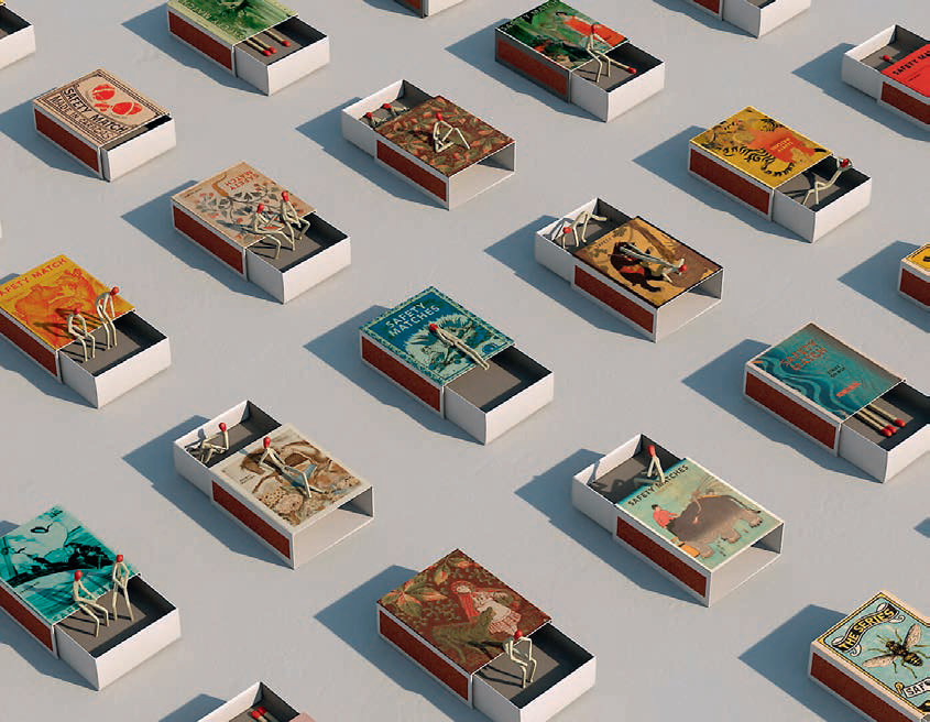 В марте американские художники Хуан Делкан и Валентина Исагирре сняли видео о важности самоизоляции со спичками в роли людей. В 12‑секундном анимационном ролике спички выстроены в длинный ряд, и когда зажигается одна, пламя тут же перекидывается на другие — предотвратить пожар можно, только разорвав цепь, то есть выйдя из ряда. Видео быстро стало вирусным, и художники, уже около года работавшие со спичками-человечками, продолжили снимать сюжеты о своих героях в новых обстоятельствах: теперь их спички, оказавшись на карантине, стали самоизолироватся в отдельных коробках, общаться в Zoom и страдать от одиночества.