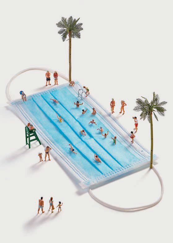 В марте японский художник Тацуя Танака начал создавать миниатюры, вдохновленные жизнью в изоляции. Звезда инстаграма (соцсеть признана в РФ экстремистской и запрещена) и мастер миниатюр Танака с 2011 года знаменит своими микроскопическими скульптурами, созданными из подручных средств. На карантине в ход пошли предметы-символы коронавирусной эпохи — туалетная бумага, термометры и маски. Причем все его коронавирусные миниатюры изображают то, чего больше всего не хватает людям во время пандемии,— отдых на открытом воздухе: из маски у Танаки получились палатка в лесу и бассейн, из градусника — гоночный автомобиль, а из рулона туалетной бумаги — целый горнолыжный курорт.