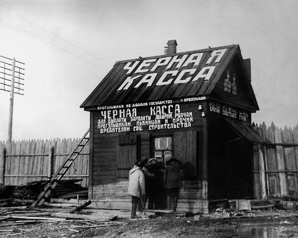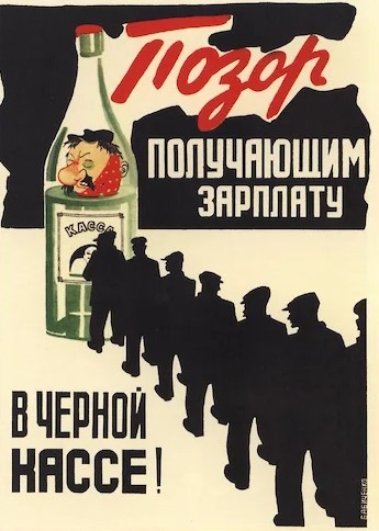 С 1921 года в РСФСР стали постепенно отменять сухой закон, унаследованный от царской России,— сначала разрешили торговлю вином, потом в продаже появилась водка, а вместе с ней вернулось и пьянство. Хотя идеологически употребление алкоголя не приветствовалось — пьянство считалось пережитком капитализма, но необходимость поддерживать экономику оказалась важнее. К 1927 году, однако, стало понятно, что чрезмерное употребление алкоголя плохо сочетается с задачей строительства коммунистического общества, поскольку изрядно подрывает трудовую дисциплину. Пьющий рабочий прогуливал смену, срывал сроки и делал брак. В качестве меры борьбы решено было использовать не только материальные ограничения, но и общественное порицание. В центре дворов предприятий и заводов стали устанавливать так называемые черные кассы — в них, на глазах у всего трудового коллектива и на несколько дней позже, чем остальным, выдавали зарплату пьяницам и прогульщикам. Для большего воздействия такие кассы делали в виде водочной бутылки или обклеивали карикатурами и лозунгами. Руководство предприятий отчитывалось, что черные кассы способствовали налаживанию трудовой дисциплины, а провинившиеся рабочие умоляли накладывать на них крупные штрафы, но не заставлять стоять в позорной очереди в такую кассу.