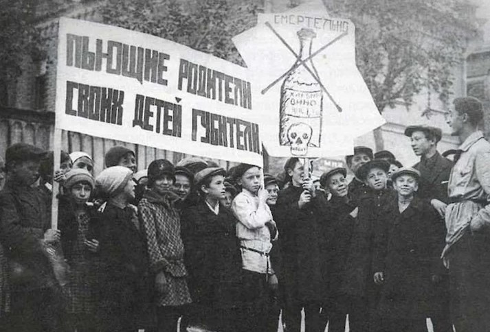 В 1928 году в СССР было создано Общество борьбы с алкоголизмом. Одним из первых его проектов стали детские походы против пьянства. По всей стране на демонстрации выводили пионеров и октябрят с лозунгами «Требуем трезвых родителей!», «Вылить всю водку!», «Отец, брось пить. Отдай деньги маме», «Купите нам тетради, а не водку» и даже «Расстрелять всех пьяниц». Всего за 1928–1929 годы в СССР провели более 200 таких мероприятий в 100 городах страны, самое крупное прошло в 1929 году в Иркутске — на него пришли 15 тыс. детей. Многие из них шли на демонстрации с энтузиазмом. По оценке одного из руководителей ОБСА Юрия Ларина, в 1928 году на московскую семью из четырех человек в год приходилось 65 л водки, так что с проблемой алкоголизма дети были знакомы не понаслышке. Помимо масштабных демонстраций распространены были и более скромные мероприятия: часто в день получки пионеры устраивали митинги с антиалкогольными лозунгами прямо на проходных предприятий.