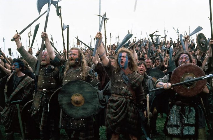Квазиисторический блокбастер Мела Гибсона о Уильяме Уоллесе, предводителе шотландцев в войне с Англией за независимость в конце XIII века, стал одним из самых кассовых фильмов 1995 года и вызвал негодование историков. Пока американские кинокритики хвалили Гибсона за зрелищность батальных сцен и мастерство, с которым он «воссоздал грязь и настроение 700-летней давности», а английские обвиняли его в «токсичной англофобии», историки в один голос утверждали, что «Храброе сердце» имеет такое же отношение к исторической реальности, какое имел бы фильм «о колониальной Америке, в котором герои носят костюмы начала XX века задом наперед». По общему мнению экспертов, создатели фильма не только перемешали исторические события и собрали все когда-либо существовавшие легенды о шотландском Средневековье — от права первой ночи для английских королей до запрета играть на волынке,— но и породили новые. Главная претензия к фильму состояла в том, что после него шотландские килты стали восприниматься зрителями как военная форма. На самом деле в XIII веке никаких килтов не было. В Средние века самой распространенной одеждой жителей шотландских низин были туники, покрытые воловьей или оленьей шерстью, а клетчатые килты появились только в XVI веке и были домашним и парадным нарядом, в котором никогда не воевали.