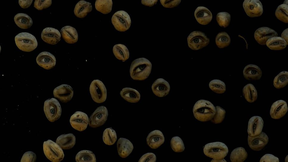 В Рязани грибы с глазами, а в Екатеринбурге — картофель: не с глазками, а с глазами. Интерактивную видеоинсталляцию «Осадок» (2012) можно пересказывать как страшилку с зачином: «В черной-черной комнате...» В черной комнате — видео, на экране — картофелепад, черный фон, замедленный темп, саспенс: сверху вниз, соблюдая законы гравитации и образуя случайные конфигурации, падает картошка — как только зритель поворачивается, чтобы уйти, клубни открывают глаза и смотрят ему вслед. Зритель, превратившийся из субъекта в объект, может почувствовать себя героем хоррора, ведь «Куда бегут собаки» — отпетые киноманы или, как они сами говорят, «кинонаркоманы». Это заметно не только в ранних видео, еще не интерактивных и отчасти автопортретных, поскольку в кадре всегда четыре персонажа: в абсурдно-поэтической «Дороге» (2002), где четыре фигуры на зимнем поле косят снег, продвигаясь к горизонту и оставляя позади себя глубокие снежные борозды; в ерническом «Восходе» (2010), представляющем собой ремейк заставки «Неуловимых мстителей» с четырьмя всадниками киберпанковского апокалипсиса в главных ролях. Киноманскими по духу кажутся многие кинетические объекты и интерактивные инсталляции группы вроде «Порнопедальных снов» (2002–2009), в которых оживают мясорубки и электропровода, «Зеркала» (2009), преследующего посетителей выставки, или «Лиц запаха» (2012), обнюхивающих жертву хоботками газоанализаторов с тем, чтобы составить из запахов фоторобот на основе полицейской базы данных. В то же время зритель «Осадка» может почувствовать себя внутри картины воображаемого сюрреалиста, как если бы Магритт променял библейские яблоки на вангоговский картофель, вооружился видеотехнологиями и взялся переписывать «Голконду». Магриттовым сюрреализмом полна и другая «картофельная» инсталляция — «Пауза» (2013), где намагниченные клубни, преодолев земное тяготение, зависли под потолком и отбрасывают на него длинные, не укладывающиеся в практический разум тени. Тут зритель может почувствовать себя внутри компьютерной игры наподобие «Тетриса», поставленной на паузу.