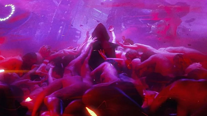 Эстетически «Кровь машин» близка не только к упомянутым выше образцам кэмпа и китча, но и к переливающимся всеми цветами неона работам Николаса Виндинга Рефна (можно еще вспомнить «Дюну» Дэвида Линча — компьютерные спецэффекты здесь так же изобретательны и нереалистичны, а манера игры — условно театральна). Но если забыть о киберпанк-составляющей, то ближе всех фильм французов окажется к работе их опального (и уже покойного) соотечественника Жан-Клода Бриссо «Черт нас возьми», в которой тоже, в общем, не было ничего, кроме голых женщин и звездного космоса над головой. После обвинения в харассменте (задолго до #MeToo, в 2002-м) Бриссо стал персоной нон грата в индустрии и провел остаток жизни, тихо снимая камерные эротические драмы, этакое интимное хоум-видео с лирическим сюжетом, а в «Черт нас возьми» — еще и с примитивными компьютерными спецэффектами. В «Крови машин» похожим голым космосом заполнена вся последняя треть 50-минутного фильма — и это чистая бессюжетная феерия (прямое следствие происхождения «Машин» из музыкального видео).