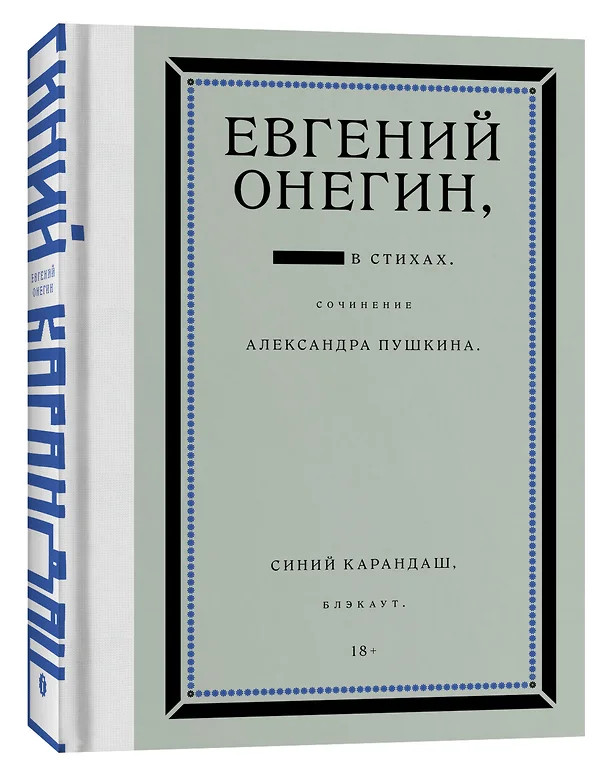 К 200‑летию первого издания первой главы «Евгения Онегина» уличный художник Синий Карандаш выпустил в издательстве Individuum собственную интерпретацию классического текста. Он почти закрасил черным большую часть слов, так что из оставшихся складывается совсем другая история, действие которой переносится в XXI век.