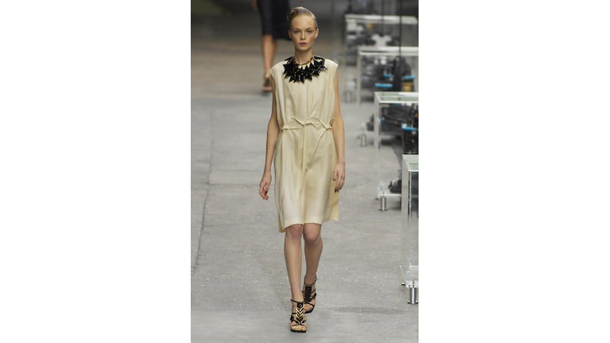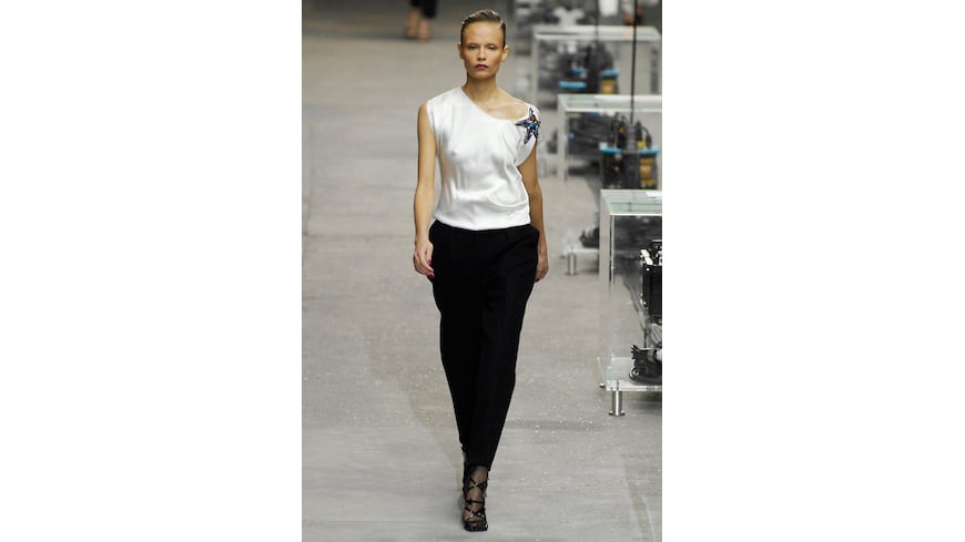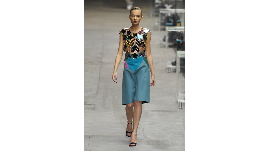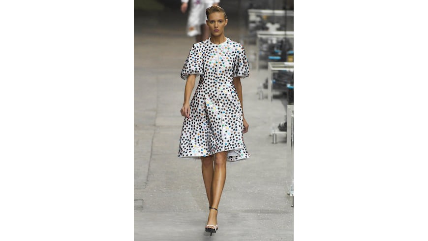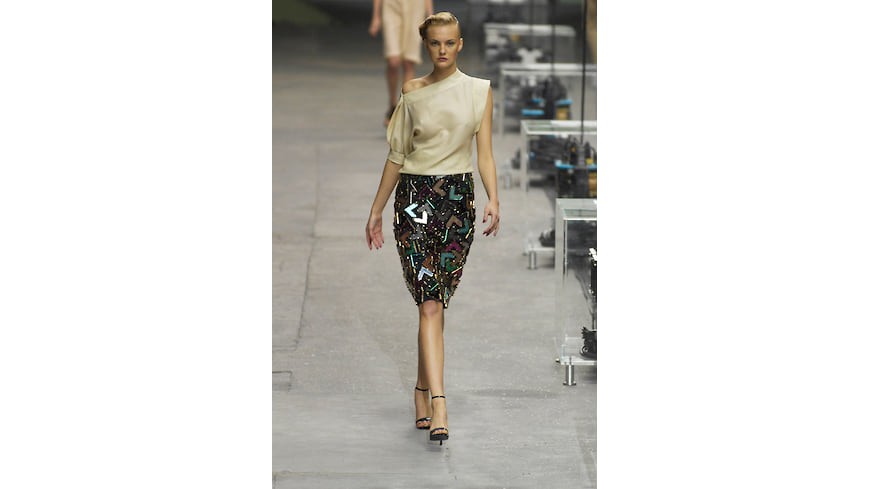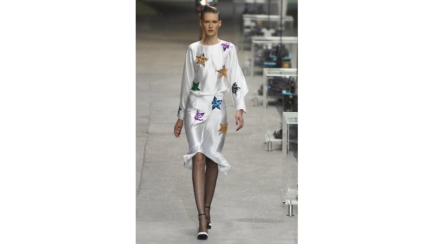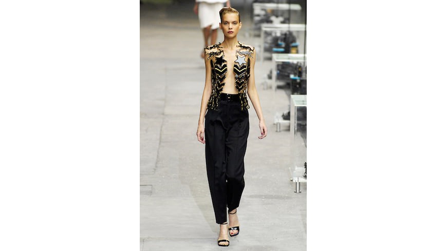 Примерно такая же история происходит со Стефано Пилати и его коллекцией Yves Saint Laurent SS 08. Пилати, описывая эту коллекцию, одну из самых красивых в его сен-лорановском периоде, говорил прежде всего о предметах гардероба — о блейзерах и свитшотах, а звезды упоминал отчего-то в контексте богинь. Но повторяющиеся звезды — в принтах, в платьях и в сделанных из пластиковых звезд нагрудниках, топах и юбках — проявляют совсем другой контекст. Звезды — любимый мотив, а пластик — любимый материал (в прямом и метафорическом смысле) массовой культуры, а образы массовой культуры — это, конечно, хлеб поп-арта, главные деятели которого, начиная с Уорхола, так любили и звезды, и звезд. Белое платье из атласного шелка, покрытое блестящими разноцветными звездами выглядит абсолютно уорхоловским, оно станет хитом коллекции и вообще лета 2008 года. Звезды появятся везде — и на одежде, и в бижутерии,— и сам механизм этого успеха, приводимый в движение разноцветными пластиковыми звездами, тоже вполне встроится видеологию поп-арта.