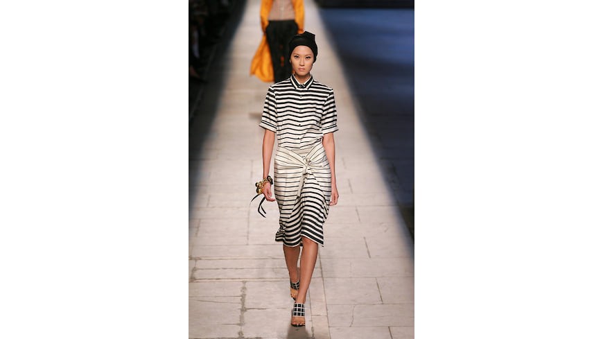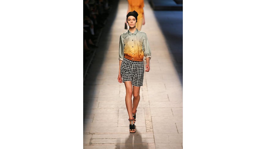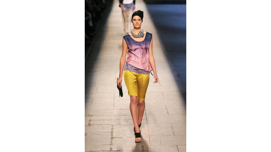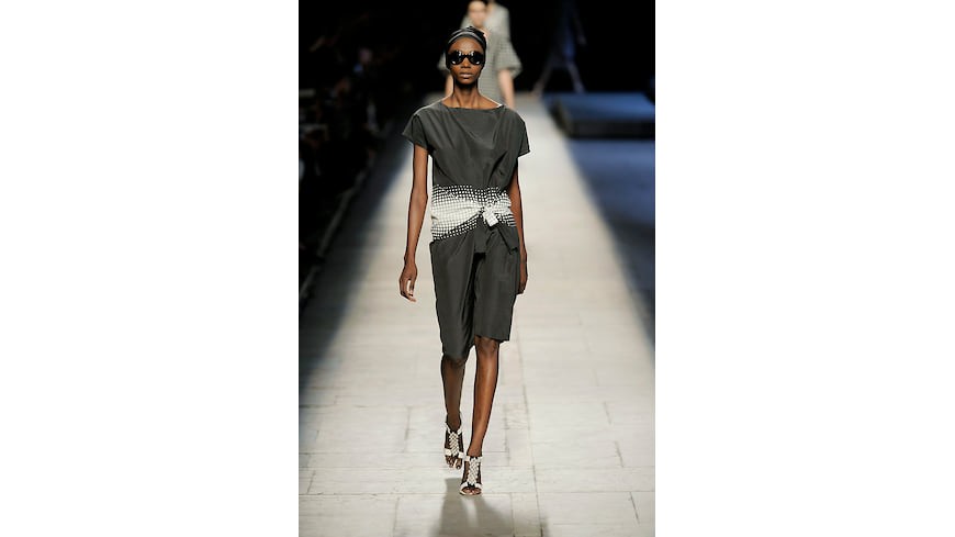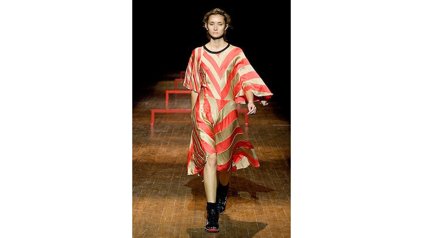 Думал ли Дрис ван Нотен о Викторе Вазарели, создавая свою вполне уже легендарную коллекцию лета 2009 года? Утверждать мы этого не можем — он не говорил о нем в интервью после показа, не указывал это имя в пресс-релизе. Но, глядя на строгую графику этих принтов, принципиально отличающихся от его обычной экзотической орнаментальности, на переходы цвета, сразу вспоминаешь мозаики парижского вокзала Монпарнас, сделанные Вазарели. А когда смотришь, как черно-белая клетка преломляется в асимметричных драпировках, узлах и запахах, создавая разные оптические эффекты, как она размывается и почти исчезает, как соединяется с расширяющейся черно-белой полоской, как цветной шелк в шашечках окрашен в деграде с переходом от цвета ночного неба к цвету розового лепестка, то думаешь не только о «Зебре» Вазарели, ключевом произведении оп-арта, но и о его серии с разноцветными сферами, и о его графическом дизайне, который так любили использовать в фэшн-съемках глянцевые журналы 60-х и 70-х. При этом степень утопленности искусства в контекст здесь такова, что коллекцию Dries Van Noten SS 09 легко можно воспринимать, совершенно не думая ни о каком оп-арте и не видя ничего, кроме красивых принтов: Дрис ван Нотен не делает на нем никакого специального упора.
