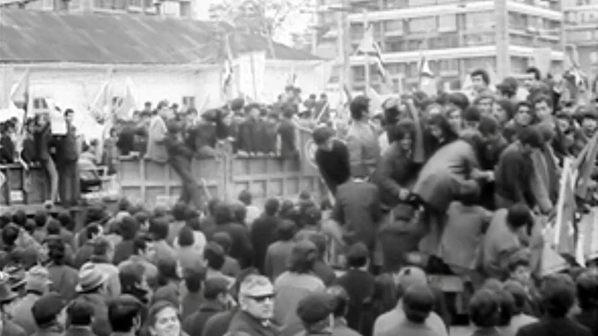 Трилогия «Битва за Чили» показывает историю чилийского путча в реальном времени: это хроника и марксистcкий анализ последних месяцев правления президента Сальвадора Альенде и блока «Народное единство». Пять человек, в том числе режиссер Патрисио Гусман, следят за тем, как возникают волнения, как в стране начинаются новые времена, как подготавливается «дорога для государственного переворота». В первой части трилогии камера всегда оказывается в водовороте толпы, авторы говорят с людьми, слушают их, бегут и протестуют вместе с толпой. И умирают вместе с ней — первая часть трилогии заканчивается смертью оператора, успевшего запечатлеть портрет своего убийцы. После переворота записи переправили за границу, монтаж фильма был завершен в Гаване.