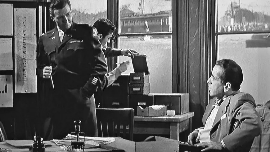 Билли Уайлдер называл Богарта настоящим бизнесменом. Есть старый анекдот о том, что его фирменная недовольная физиономия была спровоцирована обувью на размер меньше, но на самом деле он как будто всю жизнь играет человека, которому вовремя не заплатили, и это обстоятельство стирает все лишние чувства с его лица. «Вы ведь не арестуете меня за недостаток эмоций»? — как выражается он сам в фильме «В укромном месте» (1950) Николаса Рея.
