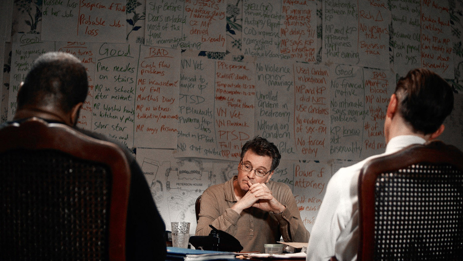 Теплым летним вечером 2001 года Майкл Питерсон (Колин Фёрт) позвонил в службу 911, чтобы срывающимся голосом сообщить, что его жена Кэтлин (Тони Коллетт) упала с лестницы и расшиблась, но еще дышит. Спустя пару минут он перезвонил и сказал, что дышать она перестала. Полиция с самого начала отнеслась к словам Питерсона с недоверием и окрестила лестницу «местом преступления» — там обнаружилось столько крови, что в несчастный случай трудно поверить. Вокруг Питерсона немедленно сплотилась семья — пятеро взрослых детей, его и Кэтлин от предыдущих браков. Но и раскол не заставил себя ждать: младшая сестра Кэтлин пришла к убеждению, что Питерсон забил жену до смерти той самой кочергой для камина, что она подарила Кэтлин на Рождество. И хотя никакой кочерги полиция не нашла, ран на голове несчастной было так много, что Майклу пришлось нанять дорогущего хитроумного адвоката (Майкл Стулбарг).