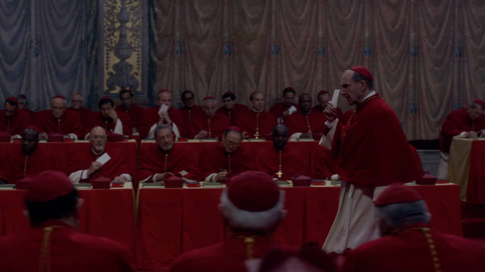 Кардинал Лоуренс (Рейф Файнс) особенно мрачен. Дело не только в боли от потери, а еще в том, что неизбежны выборы — собственно конклав, долгая и драматургически эффектная процедура которого хорошо знакома не только католикам, но и всем, смотревшим сериал «Новый папа»: главу Римско-католической церкви будут выбирать из кардиналов в результате проводящегося дважды в день тайного голосования, которое может возобновляться сколь угодно долго, прежде чем один из них не наберет абсолютное большинство голосов.