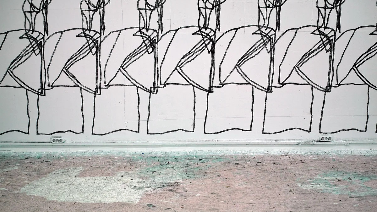 Под конец 2013 года на площадке молодого искусства «Старт» на «Винзаводе» открылась выставка пермского художника Ильи Гришаева, имя которого никому ничего не говорило, но тогдашний куратор «Старта», самарский художник Владимир Логутов, случайных людей не приглашал. В зале висели рисунки с бледными, почти прозрачными серебристыми фигурами, напоминавшими петроглифы, что-то вроде пермско-уральских писаниц. Сходство с петроглифами снимало вопрос, насколько абстрактны или, напротив, фигуративны эти чуднЫе фигуры,— становилось ясно, что зритель присутствует при рождении некоего языка и его письменности. Одна из подобных фигур была нарисована прямо на стене, в большом увеличении, и походила на граффити, пожалуй, несколько замысловатое для тега, но ведь и язык уличного искусства развивается и усложняется. Другие фигуры послужили моделями для вырезок из фанеры и пластика, осевших на стене плоским рельефом или легших на полке россыпью лекал. А еще в зале лежала стопка листов с репродукцией какой-то фигуры, превратившейся в результате копировальных процедур из серой в черную, похожую то ли на случайную кляксу, то ли на шедевр китайской каллиграфии. Лист с каллиграфической кляксой можно было взять на память — каждый, кто взял, начинал узнавать почерк художника повсюду, на любой групповой выставке, на любой биеннале. Узнавать по особенному ритму, интонации, обертонам, орнаментике.