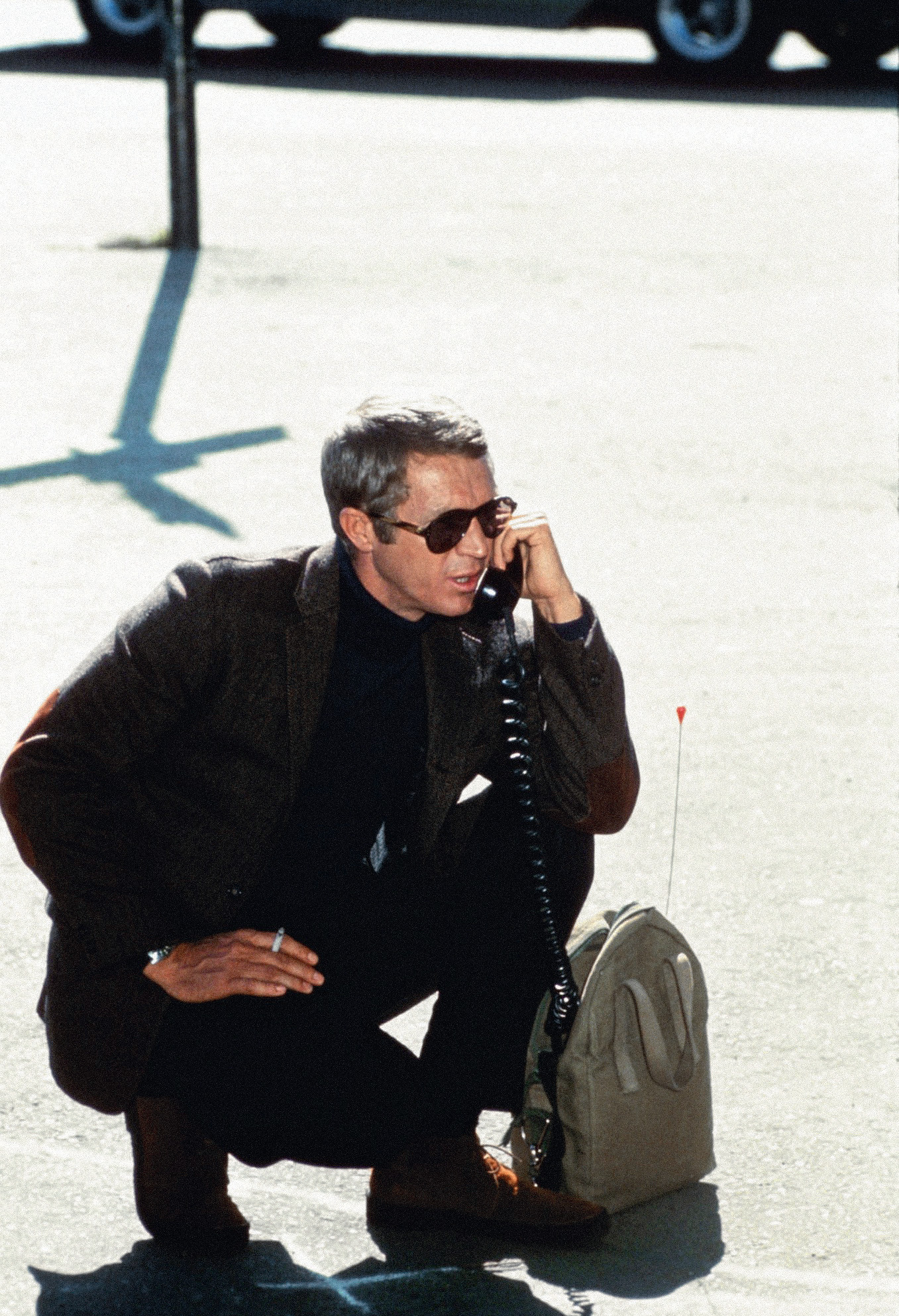 За «Никогда не влюбляйся в незнакомцев» последовало еще несколько провалов: фантастический хоррор «Капля», ненавидимый Маккуином фильм категории B, вопреки здравому смыслу получивший среди синефилов статус культового (каждый раз, когда актеру протягивали за автографом афишу «Капли», он разрывал постер и обрушивал на несчастного фаната ужасные ругательства). Собственно, именно после «Капли» он настоял на том, чтобы в титрах его величали Стивом, а не Стивеном, желая навсегда откреститься от позорного прошлого. А также «Большое ограбление банка в Сент-Луисе», названный критиками проходным нуаром, поскольку полудокументальная манера съемки долгих приготовлений к налету показалась им неуместной и претенциозной. Впрочем, уже в этом фильме Маккуин предстает как ready-made-субъект, готовая икона невозмутимой и вместе с тем проклятой маскулинности. Единственное отличие от классических явлений миру Desperado (так Маккуина дразнили еще в юности, в барах Гринвич-Виллиджа) — гардероб. Нил Адамс, с которой они женаты лишь пару лет, еще не успела взять под строгий контроль карьеру мужа, полагая, что ее путь в искусстве не менее важен. Поэтому эксплуатируемые модными брендами и по сей день образы — костюм-тройка, или голубой пуловер, или укороченный плащ и, конечно, темные очки — появятся позже, когда станет ясно, кто в семье главный и ради кого Джек Уорнер готов расстаться с миллионами долларов. Но пока злые языки на голливудских студиях продолжают утверждать, что Маккуин узаконил свои отношения с Нил исключительно из корыстных целей — невеста богата и знаменита, а жениха путают с Полом Ньюменом.