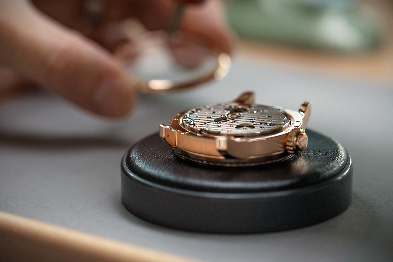 — Это мой святой Грааль — собрать подобные часы,— говорит Кристоф, мастер по сборке часов с усложнениями, про минутный репетир L.U.C Full Strike, которым он занимается на женевской мануфактуре Chopard. Кристоф в компании с 1998 года: чтобы быть допущенным к этому минутному репетиру с гонгами и защитным стеклом, сделанным из цельного куска сапфира, мастер должен иметь не менее 10 лет опыта работы с grand complications, великими усложнениями.