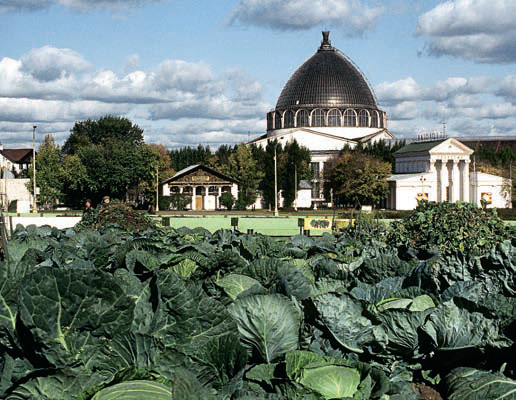 Но я почему-то уверен: окажись современный москвич на Всесоюзной сельскохозяйственной выставке сталинских времен, даже и он сообразил бы, что это место пафосное. А ведь современные москвичи не самые сообразительные люди на свете, знаю по себе и заявляю ответственно. Она, конечно, как Москва, не сразу строилась, постепенно обрастала чугунными колосьями и прочими знаками изобилия, цветущими среди павильонов, заставляющих вспомнить учебник по истории Древнего мира. Отсылка — сделанная, конечно, неосознанно, помимо воли созидателей,— к величию рабовладельческих империй прошлого. Не без пошлости, но пафос не бывает без пошлости, тут пуристу стоит смириться.