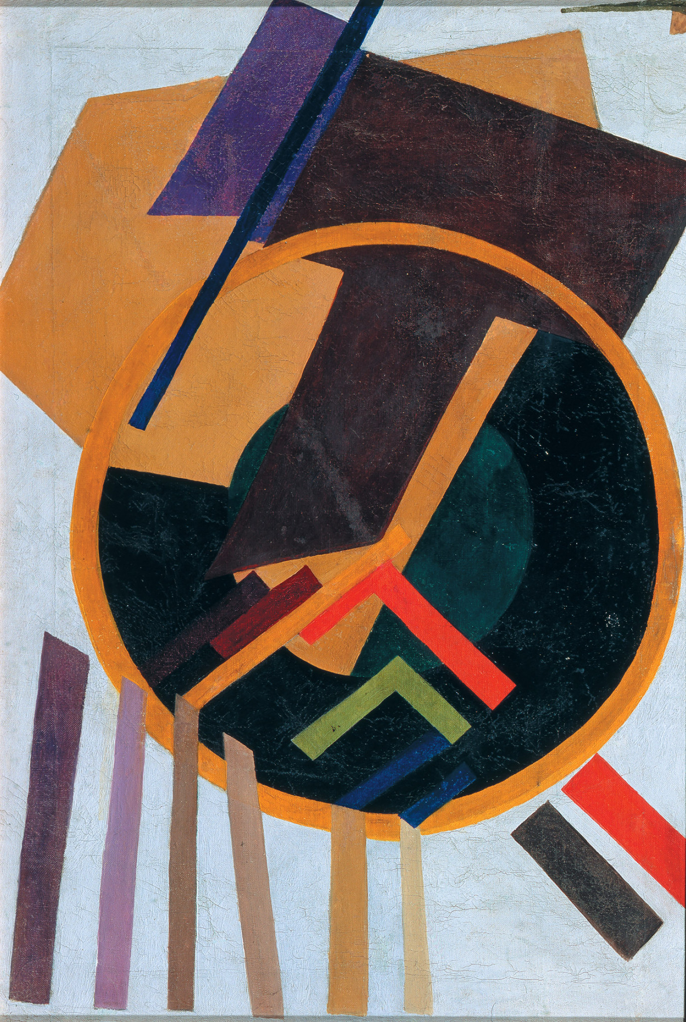 Гуашь Варвары Степановой «Танцующая фигура» (1919–1920) с яйцеголовым гражданином, сложенным из цветных прямоугольников, входит в цикл «Фигуры» и относится к тому краткому — всего-то три года — периоду, когда боевая подруга Александра Родченко, прежде чем совсем раствориться в производственном искусстве, занималась станковой живописью. Иными словами, это удивительная редкость, и когда на этикетке читаешь, что рисунок хранится не в Третьяковке и не в Русском, а Яранском краеведческом музее, удивление становится еще больше. «Две фигуры» (1920), любовная парочка, он прямоугольнотреугольный, она — овально-округлая, из той же степановской серии, только написанные маслом на картоне, принадлежат Вятскому художественному музею имени Виктора и Аполлинария Васнецовых. Там же хранятся несколько превосходных ранних кубистических и чуть более поздних абстрактных композиций Родченко, а в Яранском краеведческом имеется эскиз какой-то театральной декорации, датированный 1915 годом и наводящий на мысль о том, что Родченко уже успел повидать Пикассо в щукинском собрании. В вятском и яранском музеях обнаруживаются отменные беспредметнические акварели Василия Кандинского, в Слободском музейно-выставочном центре — роскошная коллекция кубистических и абстрактных работ Ольги Розановой, Любови Поповой, Александры Экстер и Веры Пестель, хоть сейчас делай очередную выставку про «амазонок авангарда». Выставка «Авангард. На телеге в XXI век» — не про амазонок и не про беспредметничество, а про то, каким образом настоящие шедевры боевого отряда левого искусства оказались в музеях Вятского края.