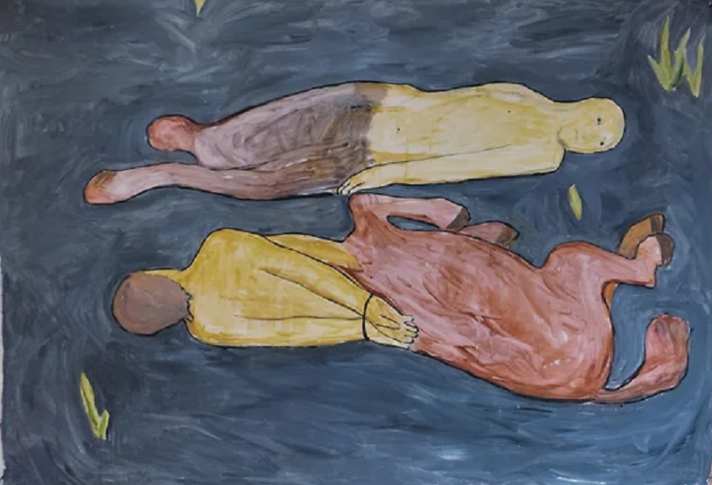 Впрочем, может быть, она никогда не выходила из крутого виража, просто каждая чужая война вдали, а своя — вблизи, и хотя эту нехитрую мысль пытается донести до аудитории любой антивоенный текст и любое антивоенное произведение, аудитория, подтверждая точность нехитрых мыслей, начинает понимать смысл послания, лишь когда рванет прямо под боком. Несколько залов — и зритель оказывается перед другим видео, в отличие от «Побережья», беззвучным. В кадре — старенькая «Волга» посреди осеннего поля где-то в горах: к ней со всех сторон, появляясь тут и там из холодного тумана, устремляются люди, мужчины, женщины, старики, дети,— за четыре минуты экранного времени в готовый развалиться автомобиль каким-то чудом набивается несколько дюжин человек. «Волга» чеченского художника Аслана Гойсума была снята в 2015 году — для кого-то чеченские войны остались в прошлом, для кого-то они всегда оставались вдали, только не для художника, родившегося в Грозном в 1991-м и проведшего все детство в лагерях беженцев. Рядом с «Волгой» висит тонкий, гармонирующий с видео по осеннему колориту экспрессионистский пейзаж: большой крестьянский двор на краю деревни, множество кибиток, лошади распряжены, люди греются у костра. Никакой цыганской экзотики — «Пейзаж с беженцами» австрийского художника Карла Йирака (1897–1982) был написан после 1945 года и отражает личный опыт живописца: Йирак родился в Оплотнице, в Нижней Штирии,— после Первой мировой войны эти земли отошли