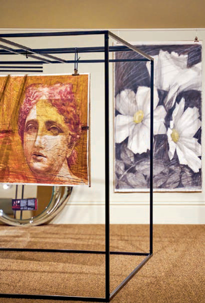 Работы, представленные на выставке в «Частной резиденции», продолжают мои поиски последних лет. Главная тема — обращение к античности, исследование связи древних форм, орнаментов, рельефов и обломков архитектуры с живыми растениями и плодами, размышление о смыслах этих подобий, о вечности во фрагменте мрамора и мгновенности цветения. Все серии работ и темы выставок, безусловно, связаны между собой. Основой для московского проекта стала новая серия «Большая графика»: 13 работ высотой полтора метра на винтажной бумаге. Такой масштаб в графике — это новая и захватывающая задача. Просто вдруг захотелось поработать в таком формате, и это придало несвойственную графике монументальность, соотносимую с римским масштабом. Сквозным мотивом серии стали метаморфозы, то есть превращения-перерождения одних объектов в другие. Природные и созданные руками античных мастеров формы неразрывно сосуществуют, буквально и смыслово прорастают друг в друга. Коринфские капители придуманы тысячелетия назад неведомым мастером по мотивам живых листьев аканта. Растения, которые мы видим сегодня в саду, повторяют собой праформы, преобразованные за века искусством в архетипические мотивы. Постепенно разрушаясь, они дошли до нас в виде обломков и фрагментов мрамора, обретя самодостаточность и новую предметность.