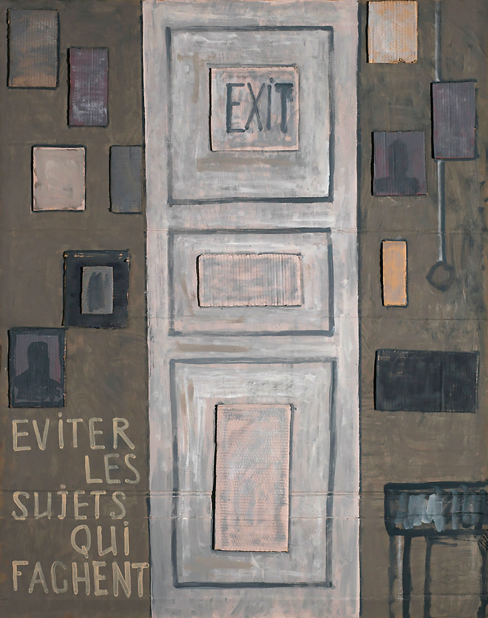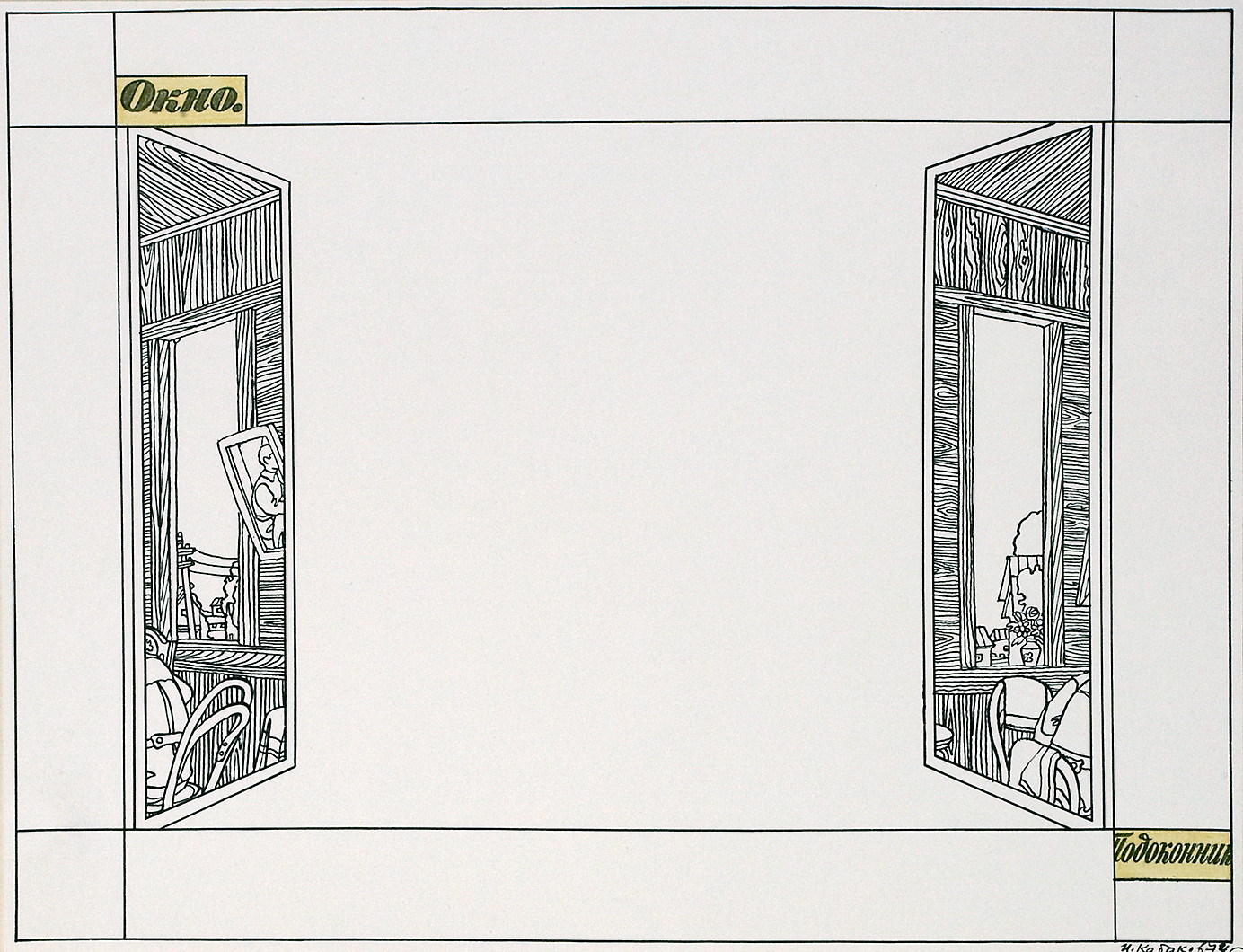 Выставочный нарратив, казалось бы, никаких неожиданностей не предвещает. Человек заперт в своей комнате, такой как у Ани Желудь. Уставился в экран смартфона, как лирический герой Игоря Самолета. Следит за скачками кривой заболеваемости и графиками курсов валют, превращающихся в призрачный «Временный ландшафт» Елены Артеменко. Или, допустим, глядит в окно — тут возникают «Окна» Ивана Чуйкова, из которых открывается живописный вид на руины картины. Всматривается в заоконную даль, читая тайные знаки, как в «Проектах реконструкции звездного неба» Франциско Инфанте-Арана, и думая о небесной бесконечности и конечности всего земного, что отражено в метафизических посланиях Эрика Булатова. Видит ангелов, сходя с ума, словно «Вокноглядящий Архипов» Ильи Кабакова. Ослепленный госпитальными люминесцентными лампами, вдруг ощущает хрупкость жизни, как в больничной инсталляции Сергея Браткова. Понимает, что нет ни входа, ни выхода, вернее, что выход один, упираясь взглядом в глухие серые стены и двери Михаила Рогинского. И находит исток супрематизма в кладбищенском пространстве и архитектонах простых деревянных крестов, как в совсем неабстрактных абстракциях Эдуарда Штейнберга. Все это, правда, изрядно разбавлено веселеньким пандемическим «артком», спродюсированным галереей «Триумф», но ему не удается скорректировать общего настроения.