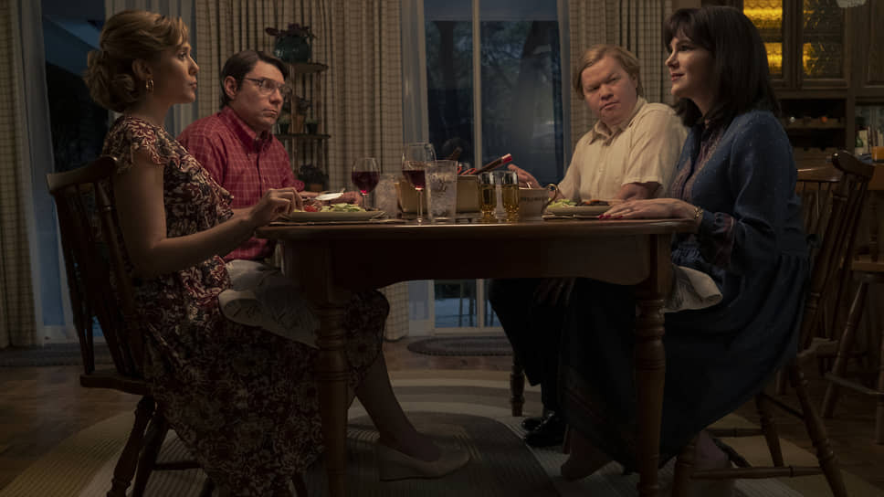 С двумя новыми адаптациями этой истории произошло нечто странное: они снимались практически одновременно и лишь по стечению обстоятельств вышли с разницей в год. В сериале «Кэнди» (2022) главную роль сыграла Джессика Бил, а действие сосредоточилось на зловещей атмосфере вокруг убийства: чего стоит эпизод, в котором трое крепких мужчин из числа соседей заходят в дом не отвечающей на звонки Бетти и с ужасом отшатываются от зрелища изрубленного тела. И вот спустя ровно год свою версию кошмара представляет на малом экране заслуженный голливудский сценарист Дэвид Келли — муж Мишель Пфайффер, автор «Закона Лос-Анджелеса» и «Элли Макбил», карьера которого снова рванула ввысь после выхода «Большой маленькой лжи». История Кэнди Монтгомери — это, безусловно, его материал. До того как стать сценаристом, Келли работал юристом и собаку съел на судебных драмах — а чуть ли не самая драматическая часть тут тоже происходит в суде. Вдобавок последние сценарии Келли («Отыграть назад»), «Линкольн для адвоката») замешаны на теме раздрая в семье и адюльтера — а убийству Бетти предшествовал тайный роман Кэнди с ее мужем.