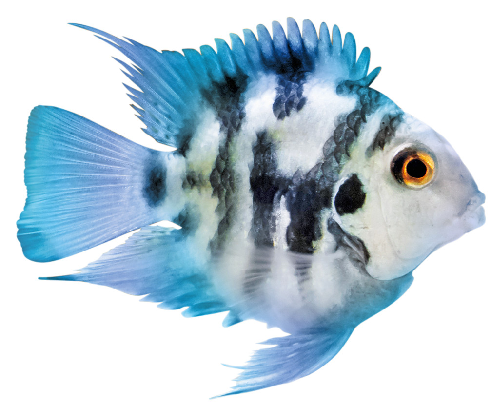 В природе синие тигровые попугаи обитают… Нигде они не обитают, в природе их не существует: этот вид рыбок — искусственно созданный гибрид. Причем гибрид относительно свежий, сотворенный всего-то лет пять-шесть назад. И случилось это где-то в Азии — скорее всего, на Тайване, но это не точно, потому что все засекречено. Засекречены и прародители нашего попугая — похоже, мир аквариумистов блюдет свои тайны не хуже разработчиков новейшего гиперзвукового оружия. Ясно одно: наш тигр принадлежит к цихлидам, или цихловым (Cichlidae), многочисленному семейству класса лучеперых рыб. Разнообразные цихлиды вольно живут в пресных или немного солоноватых водоемах чуть ли не по всему миру. В смысле, чуть ли не по всему теплому миру. Даже у нас на юге были обнаружены представители этого семейства, но в России они, конечно, никакие не аборигены, а просто потомки рыбок, каким-то образом сбежавших из аквариумов и как-то здесь устроившихся.