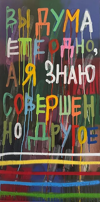 «Чем хуже, тем хуже», «День за днем / Дно за дном», «Провал обречен на протест» — можно подумать, что это Вагрич Бахчанян воскрес и продолжает комментировать текущие события. Впрочем, «Все больше людей думают, что они думают». Наверное, вырванные из контекста фразы Кирилла Кто воспринимаются как поэзия, идущая в русле дадаистско-обэриутской традиции, и это отчасти верно, как верны будут мысли о Бахчаняне или московском концептуализме. Но эту закрепленную на стене, холсте или бумаге поэзию недостаточно слышать — ее непременно нужно видеть воочию. Видеть шрифт, почувствовать его ритм, его озорной и одновременно невротический («Не во-вторых, а во-первых: постоянно на нервах») характер. Видеть буквы, однотонные или цветные, как будто бы живые, так что они невольно напоминают о логотипе журнала «Веселые картинки», придуманном концептуалистом Виктором Пивоваровым. Видеть фон, мозаикой цветовых пятен порой отсылающий к Никола де Сталю. Видеть совершенно непереводимую с русского на какой-либо другой язык игру слов, когда путем визуальной корректуры обыватели превращаются в «Убивателей», а обыденность — в «Обыдленность». Видеть здесь и сейчас, ведь слово приобретает взрывную силу, только когда вписано в контекст места и времени.