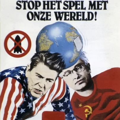 Если смотреть на мир через советские линзы, у обостряющегося в 1983 году конфликта есть одна сторона — Соединенные Штаты. Это они взвинчивают темп гонки вооружений, придвигают ракеты к нашим границам и мечтают сжечь мир в ядерном огне. Это они грезят войной, а мы стоим за дело мира: всем народом, от кремлевских руководителей, выдвигающих новые мирные инициативы, до обычных людей, перечисляющих зарплату в фонд мира. Вместе с нами, плечом к плечу, все люди доброй воли на всех континентах: журналисты-международники умеют представить дело так, что даже искренний порыв антивоенных активистов в Западной Европе выглядит чем-то вроде партсобрания в актовом зале, куда сгоняют после работы. На заднике, за президиумом,— выцветший плакат «Миру мир».