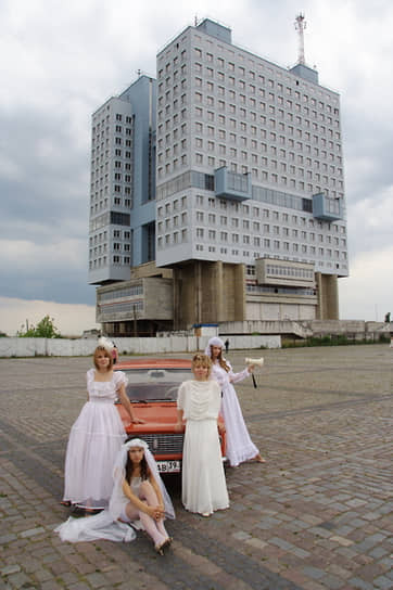 В обоих высмеивались современные свадебные ритуалы и все, что за ними стоит, от гендерных стереотипов до патриархально-модерной гибридности. Летом, в самый разгар брачного сезона, когда к открыточным калининградским достопримечательностям вроде могилы Канта или Дома Советов выстраиваются очереди на свадебную фотосессию, десант в составе двух «Нежных баб» и двух добровольных соучастниц, наряженный в белые платья с фатой, отправился на улицы города — приставать к случайным прохожим с матримониальными предложениями. Они не скоро расстанутся со свадебным платьем как перформативным костюмом: пройдут в этом обрядовом наряде сквозь «Огонь» (2012) и «Лед» (2012), встретят Балтийское море, похоронившее множество моряков и рыбаков, «Хлебом да солью» (2009), вываляются в «Грязи» (2010), «прощаясь с землей», как было принято в старину на Куршской косе. И выкинут его лишь пять лет спустя, в Гданьске: возле местного моста влюбленных, решетки которого завешаны замками счастливых парочек, поклявшихся в вечной любви, установят большую железную клетку — вначале «бабы» в белых кружевных платьях станут бросать в нее куски гранита, камень за камнем, две тонны, а после снимут кружева и бросят их сверху, приглашая всех разведенных женщин города последовать этому примеру и выбросить свое не принесшее удачи свадебное одеяние (перформанс и интерактивная инсталляция «Память о счастье», 2013).