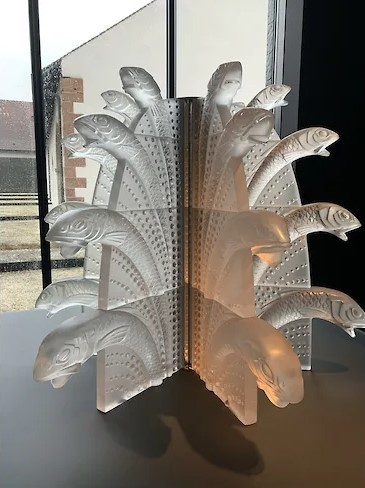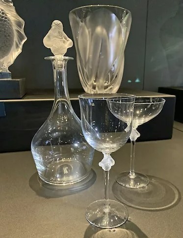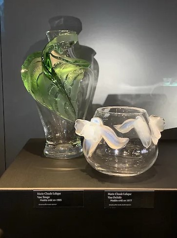 Музей совершенно уникальный — в нем есть все, что объединяет слово Lalique, от ранних украшений Рене Лалика (а он начинал именно как ювелир) до современных хрустальных фигур и коллекций, придуманных в креативной студии в последние годы. Между ними не только всем известные флаконы для духов (первый из них Лалик выплавил буквально у себя на кухне, чуть не спалив весь дом), с которых началась переквалификация Лалика-ювелира в Лалика-производителя художественного стекла, и не только такие же узнаваемые вазы «Вакханки» и «Ласточки», но и куда менее предсказуемые вещи. Например, стеклянные алтарные панели и распятие для часовни Нотр-Дам-де-Фиделите в Нормандии, сделанные Рене Лаликом в 1930-м, или тарелки, сделанные его дочерью Сюзанн Лалик-Авиланд для мануфактуры своего мужа, Theodore Haviland, тоже на рубеже 20-х и 30-х,— с аэропланами, кружащимися вокруг модели земного шара, или кораблями, бегущими по квадратным волнам,— которые внезапно заставляют вспомнить то, что делали наши авангардисты на Ленинградском фарфоровом заводе примерно в эти же самые годы.