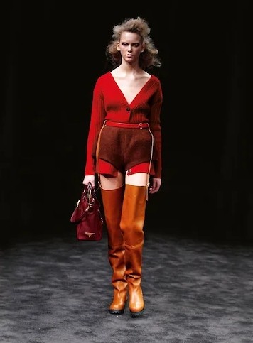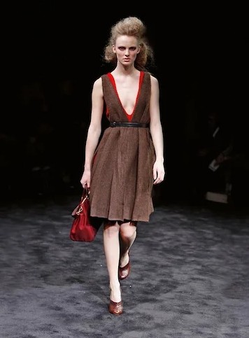 Эта декада и ее силуэты — одни из главных, наиболее часто повторяющихся в коллекциях Прады, они опять появились, например, в самом последнем сезоне, осенью 2020,— и в Prada и в Miu Miu. Но еще более важной, чем ностальгия, была для нее возможность на основании винтажных силуэтов сконструировать будущее — ту моду, которую захотят носить все,— пересобрать их, используя современные структурные элементы и технологии, переквалифицировать их, дать им новый контекст и смысл. То есть ее ностальгия была вполне футуристической.