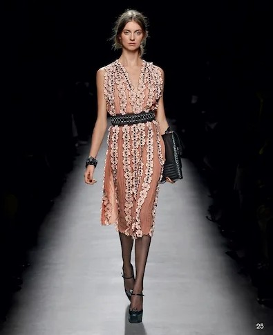 Еще одна коллекция на эту же тему и практически только из платьев — это Bottega Veneta SS 13. Томас Майерс хотел показать буржуазную женственность, но так, чтобы она выглядела трогательно, а не напыщенно. И 40-е дают для этого идеальный материал. Перед нами пройдет целая галерея платьев из занавесок и нарядов из бахромы от портьер, причем некоторые платья будут выглядеть так, будто они сшиты из разных занавесок, какие нашлись в доме, и даже какой-то кусок пришлось еще отрезать от скатерти, прошив все красивыми тесемочками. Классический лук эпохи неореализма — прямое платье, прикрывающее колени, сверху трикотажная кофта и поясок на талии. Будут версии практически халатиков, а также красивейшие луки с прямыми белыми юбками и блузками под горло с широкими плечами и широкими прямыми рукавами до локтя, как из миланских винтажных магазинов — с вышивкой, прошвами и мережками. В одном луке под черной прозрачной кофтой окажется лифчик в веселый цветочек, будто со старых пляжных фотографий из Сан-Ремо. А в финальной серии коктейльных платьев появится декор из камней, вышивки и аппликации — тоже как бы самодельный. Вся эта бедность и непритязательность будут отшиты, конечно, в экстремально роскошных материалах и ремесленных техниках Bottega Veneta и смотреться изумительно.