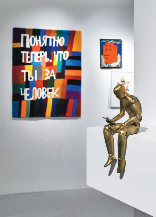 Гостей встречает трехметровый «Боксер» (2018) Дмитрия Аске, нацелившийся на кирпичную стену,— изюминка коллекции основателя фонда Ruarts Марианны Сардаровой. Ее собрание музейное: ключевые имена, разные техники, масштабные проекты. Есть понастоящему культовые вещи вроде трансформаторной будки с граффити «Катастрофа наших дней» (2018) от ZOOM.