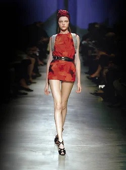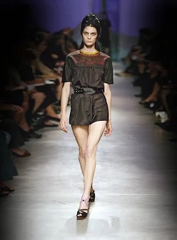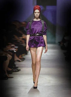 Прада в том же самом сезоне, весна-лето 2007, покажет чалмы, сделав их тем самым ударным аксессуаром, который станет бестселлером. В чалмах Prada SS 07 появятся все, вся светская хроника будет в этих самых чалмах, их будут носить без разбора и юные барышни и солидные дамы — в общем, возникнет тот самый эффект хита, который Миучча Прада так отлично умела организовать в 2000-е. Но на подиуме они произведут впечатление не в последнюю очередь благодаря тому, что будут соединены с трусами — атласными, с максимально высокой талией, стилизованными под 30-е годы. В коллекции были и чалмы с юбками, и чалмы с платьями, и чалмы с суперкороткими кофтами, едва прикрывающими уже обычные трусы, но именно чалмы с высокими атласными трусами, которых было буквально пять выходов на все дефиле, стали самыми цитируемыми и узнаваемыми луками из той коллекции. Трусы сами по себе — вообще белье, будуар,— не были какой-то новостью, а даже были вполне исторической частью моды, как и сама по себе чалма, тоже не впервые тогда выведенная на подиум, но вместе они были настолько из разных опер и настолько не стыковались с тем, как можно одеться, что это вызвало особое оживление. И Прада на бэкстейдже после показа успокаивала журналистов в том смысле, что не волнуйтесь, никто не заставляет ходить в трусах и чалме, есть же и разные юбки и платья. Пропорции опять же были максимально смещены в сторону ног и их длины, и вообще эти плотные атласные трусы смотрелись восхитительно.