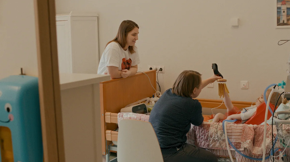 Лида со своим подопечным Колей — мальчиком с тяжелой инвалидностью — живет своей обычной жизнью: она то идет на фотосессию для журнала, то в церковь, то сидит на работе, ухаживает за Колей и другими пациентами из интерната, примеряет рюкзак, в котором можно носить Колю, перестилает кровати, отвечает на письма. Камера следует за героиней по заснеженным улицам, по коридорам аэропорта, смотрит в окно хосписа, на Балтийское море, на публику non/fiction, на пациентов хосписа и их родителей, на батюшку в церкви, на двери автобуса. Лида рассказывает о своей жизни, посмеиваясь в самых неожиданных местах («мне скучно, честно говоря, ходить на похороны... чувств у меня никаких не вызывают могилы, все эти службы... скорее раздражает это все»). Коля лежит в специальном кресле.
