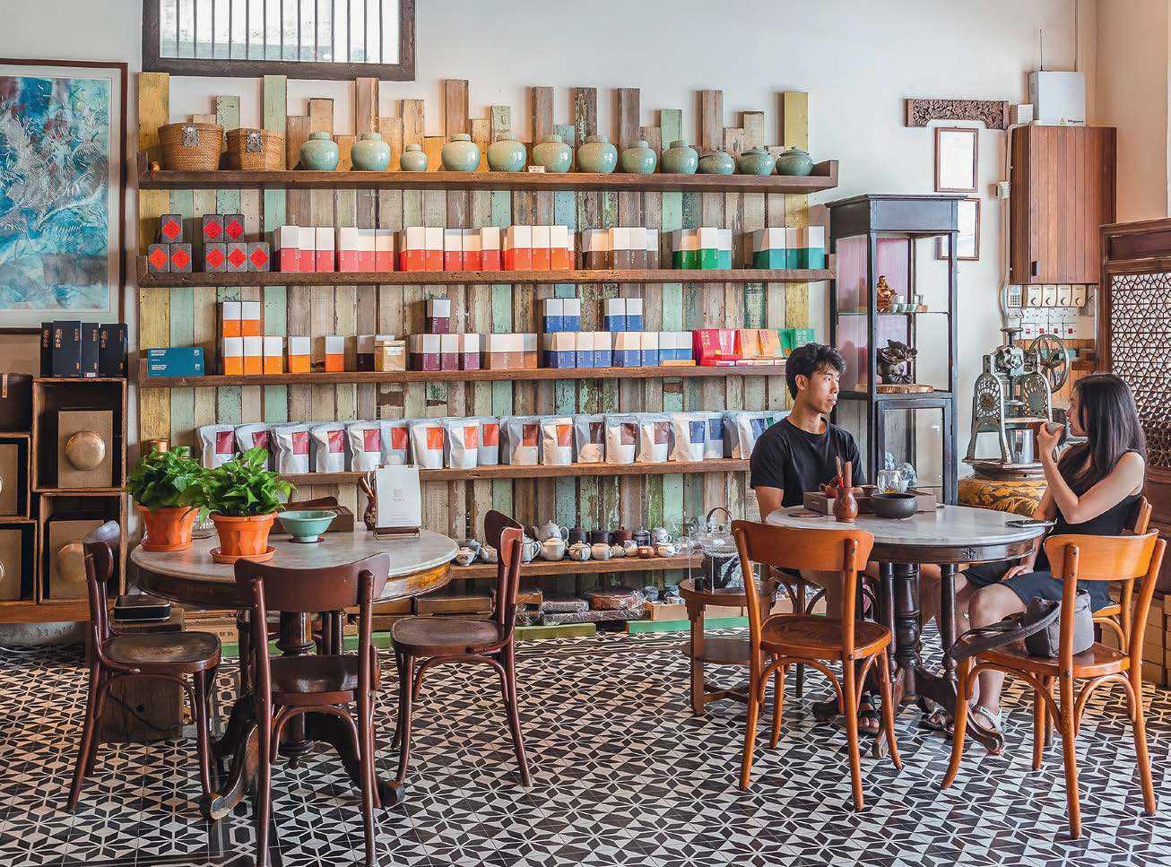 Муралами местные образчики уличного искусства не назовешь. Это, как правило, небольшого размера коллажи с привычными предметами: навечно припаркованными к стене мотоциклами или ветвями деревьев — и почти всегда в ореоле черной плесени, которая вообще давно стала полноценной частью архитектурного кода Пенанга. Как ингредиенты в супе лакса, на острове Пенанг перемешались четыре культуры: малайская, китайская, индийская и британская. В старом портовом городе не найти ни одного коренного жителя, даже малайцев. Все население, включая этнос Баба-Ньоня, — потомки иммигрантов. Но все же доминирование китайской культуры очевидно: от домов, образующих целые кварталы, с аркадами и старинными дверьми, яркими ставнями на вторых этажах, с магазинами всякой всячины на первых (шопхаусами), клановых храмов с керамическими драконами на крышах до привычных китайских блюд в уличных забегаловках и обилия чайных заведений, куда приходят на дегустации.