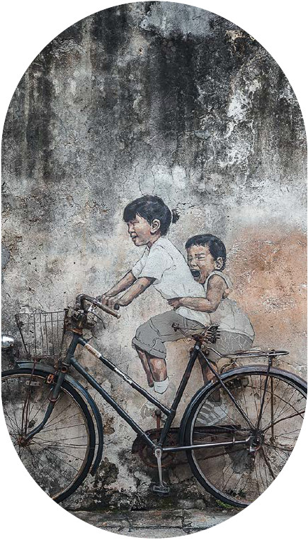 Туристы в Джорджтауне охотятся за cтрит-артом, шагают по карте, начиная прогулку от самого известного под названием «Маленькие дети на велосипеде» авторства Эрнеста Захаревича, и ищут новые картинки на стенах и инсталляции из стальных прутьев, рассказывающие о культуре Пенанга. За туристами охотятся велорикши, которые настойчиво предлагают сделать круг почета по старому центру.