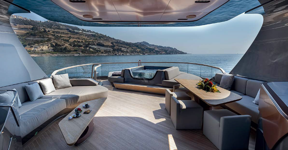 Формы у суперяхты Tecnomar Evo 120 по имени Lucy преобладают над функциями