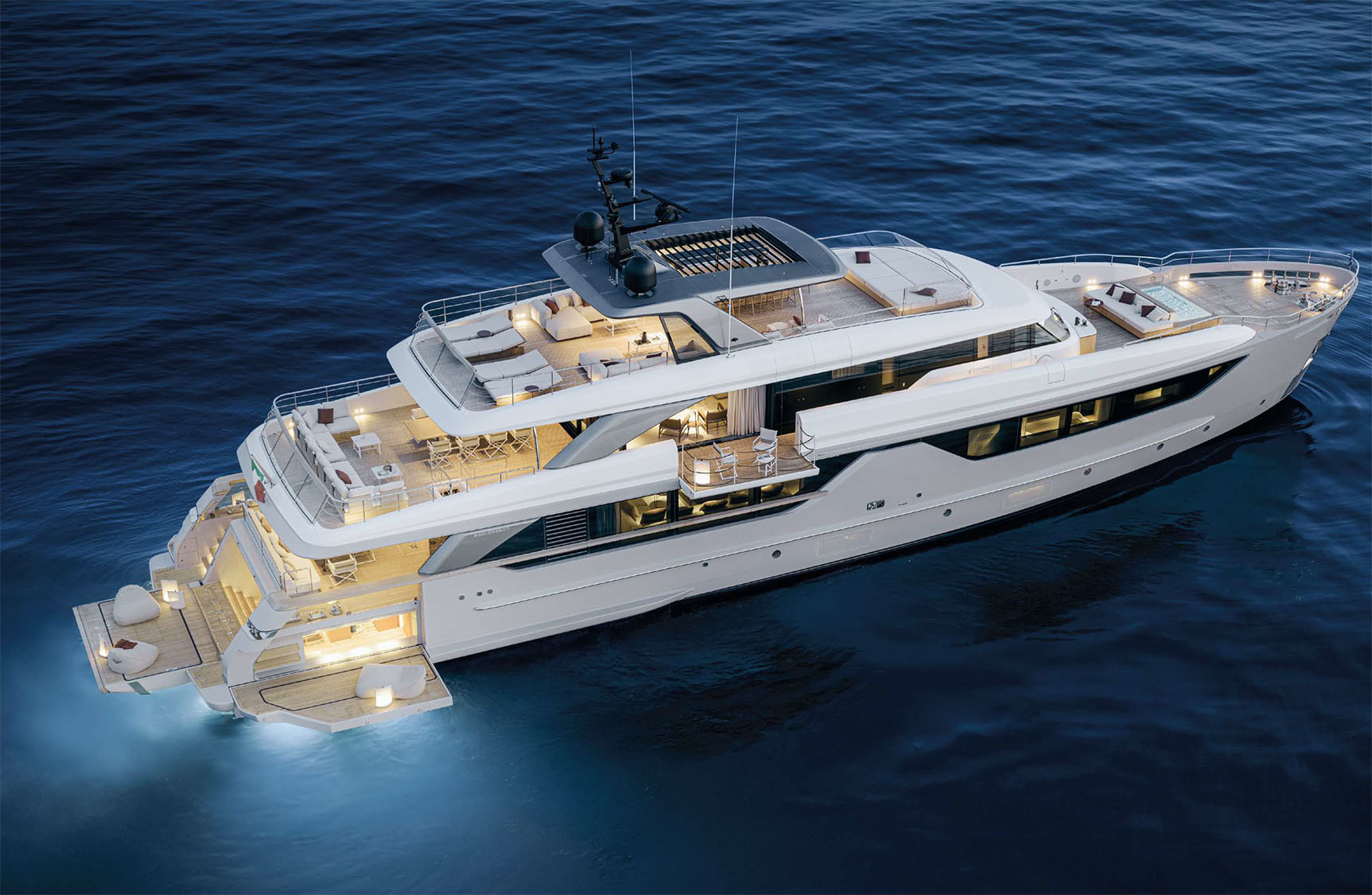 Для Sanlorenzo асимметричные яхты — это модели, у которых надстройка расположена так, что проход с кормы на фордек остается только по одному борту, а по второму все пространство занимает жилая часть главной палубы. Такой ход дает возможность сделать жизнь на борту комфортнее и для владельца яхты (мастер‑каюта на больших моделях Sanlorenzo часто находится на фордеке главной палубы), и для его гостей (увеличивается площадь салона). У SD132 в отношении асимметрии есть свои особенности: на основной палубе бортовой проход отсутствует по правому борту, а на верхней — по левому. Это делает схему передвижения по яхте круговой, что удобно и для команды, и для гостей. Очень привлекательно у Sanlorenzo SD132 выглядит «пляжный клуб», который не пропустил ни один из внимательных посетителей Cannes Yachting Festival.