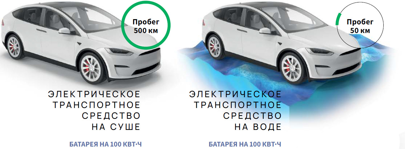 Второй сдерживающий фактор — низкая плотность энергии в существующих аккумуляторах. Например, если машина с батареей на 100 кВт·ч обладает запасом хода в районе 350 миль, то катер с таким же аккумулятором в режиме глиссирования пройдет всего 35 миль. Другими словами, для движения по воде требуется в 10 раз больше энергии. Чтобы лучше оценить эту разницу, представьте, что вам приходится буксировать лодку на трейлере по нескончаемому подъему в гору.