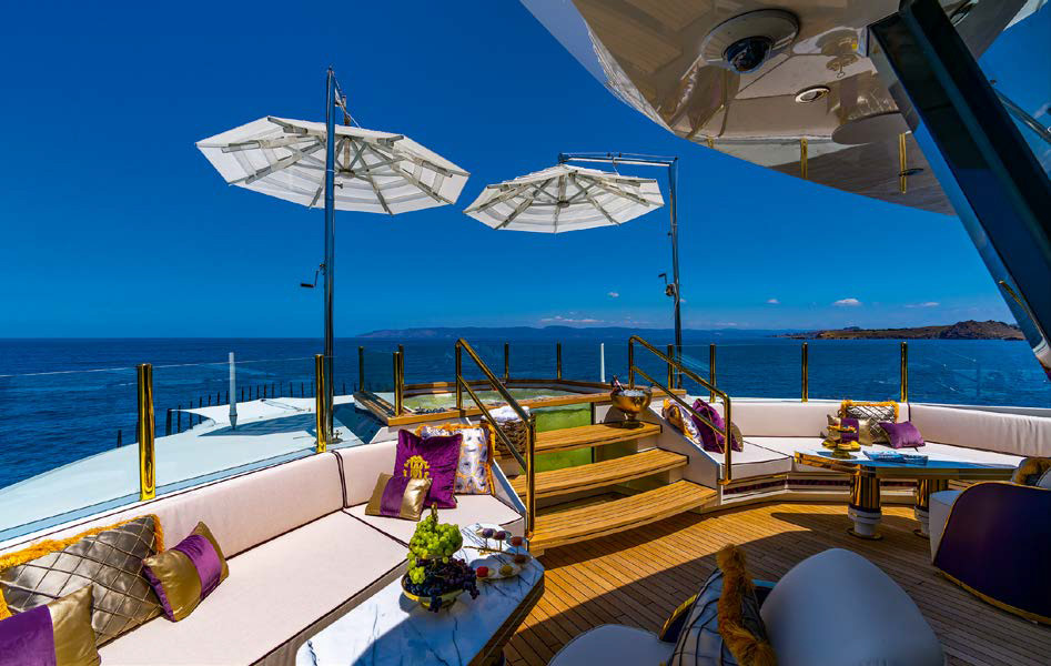 «Мы изменили палубу владельца, чтобы сделать ее просторнее, — поясняет Эмрекан Озгюн, генеральный директор Unique Yacht Design. — Так, мы удлинили надстройку в корме ради увеличения мастер-каюты и добавили в апартаменты закрытую приватную зону отдыха, из которой можно напрямую выйти к джакузи».
