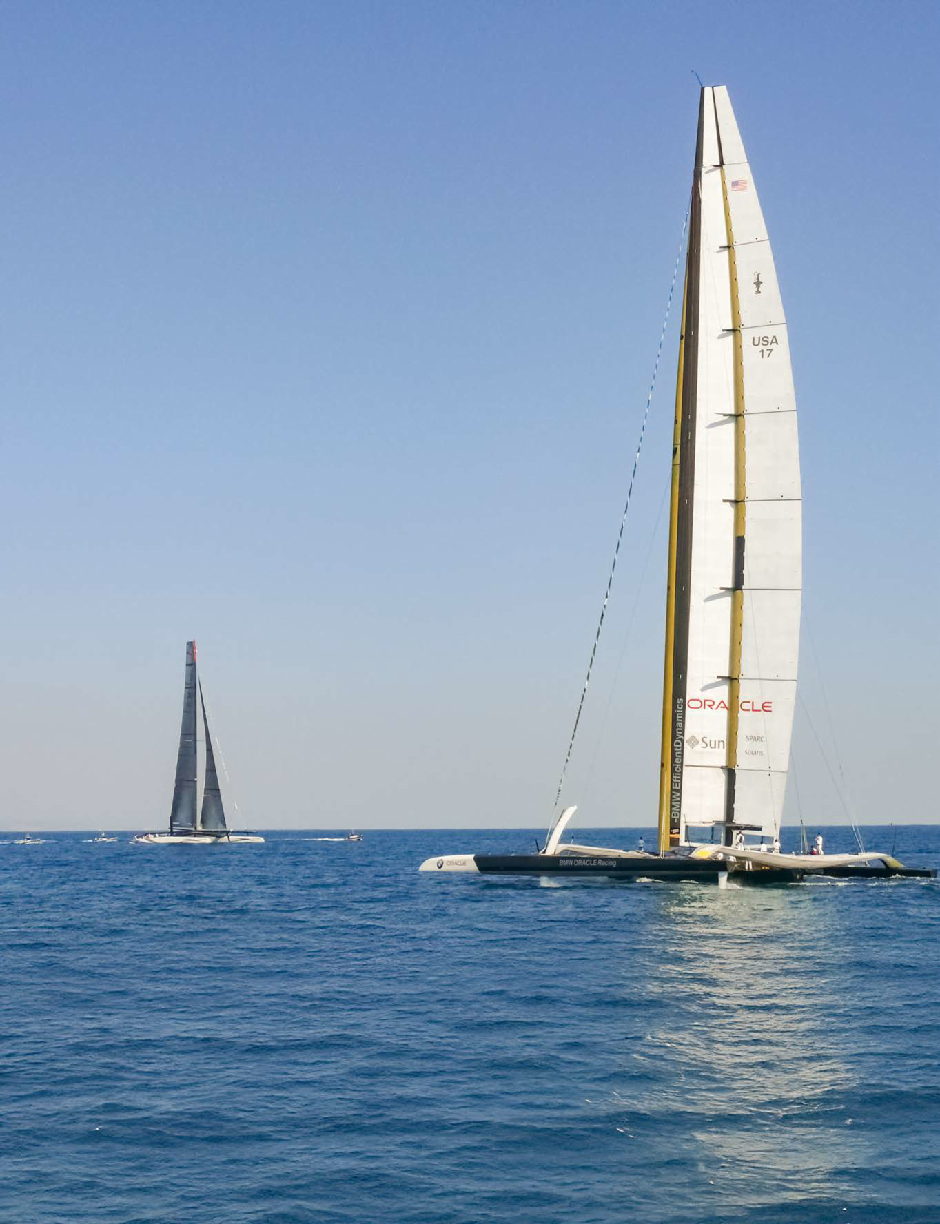 Далее отмечу «выстрел» wing sail, опять в рамках соревнований лодок IACC (International Americaʾs Cup Class). В 2010 году команда BMW Oracle Racing из США выиграла Кубок «Америки» на тримаране с жестким гротом. Крыло высотой 68 м с развитой механизацией закрылков было больше крыла Boeing 747. Эффективность профиля оказалась настолько высокой, что лодка- тримаран под одним гротом обгоняла конкурентов с полным конвенциальным вооружением, со стакселем и гротом. Она развивала 28 узлов при истинном ветре всего 10 узлов! Среди «кубковых» лодок появился целый класс катамаранов АС45 (Americaʾs Cup 45 feet), использующих грот-крыло как стандарт правил. И, наконец, рекорд скорости под парусом установил аппарат Sail Rocket компании Vestas с жестким крылом — 61,3 узла при средней скорости на мерной дистанции 54 узла! Наглядное подтверждение эффективности жесткого паруса, не так ли!