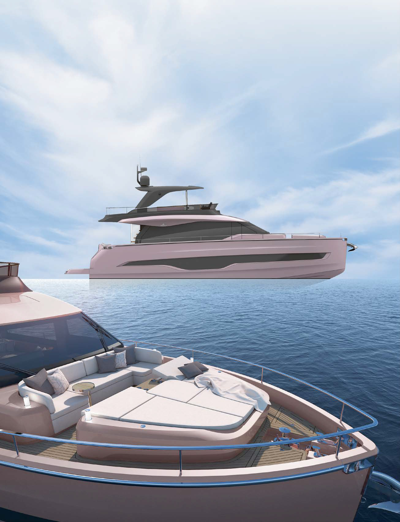 Новая яхта дополнит флагманскую линейку флайбриджных лодок верфи, куда уже входят Sessantotto 78 и Settantasette 67. Напомню, что верфь по традиции называет модели по длине лодки, и Sessantadue переводится с итальянского просто как «62». Или не просто, если вас занимает магия цифр.