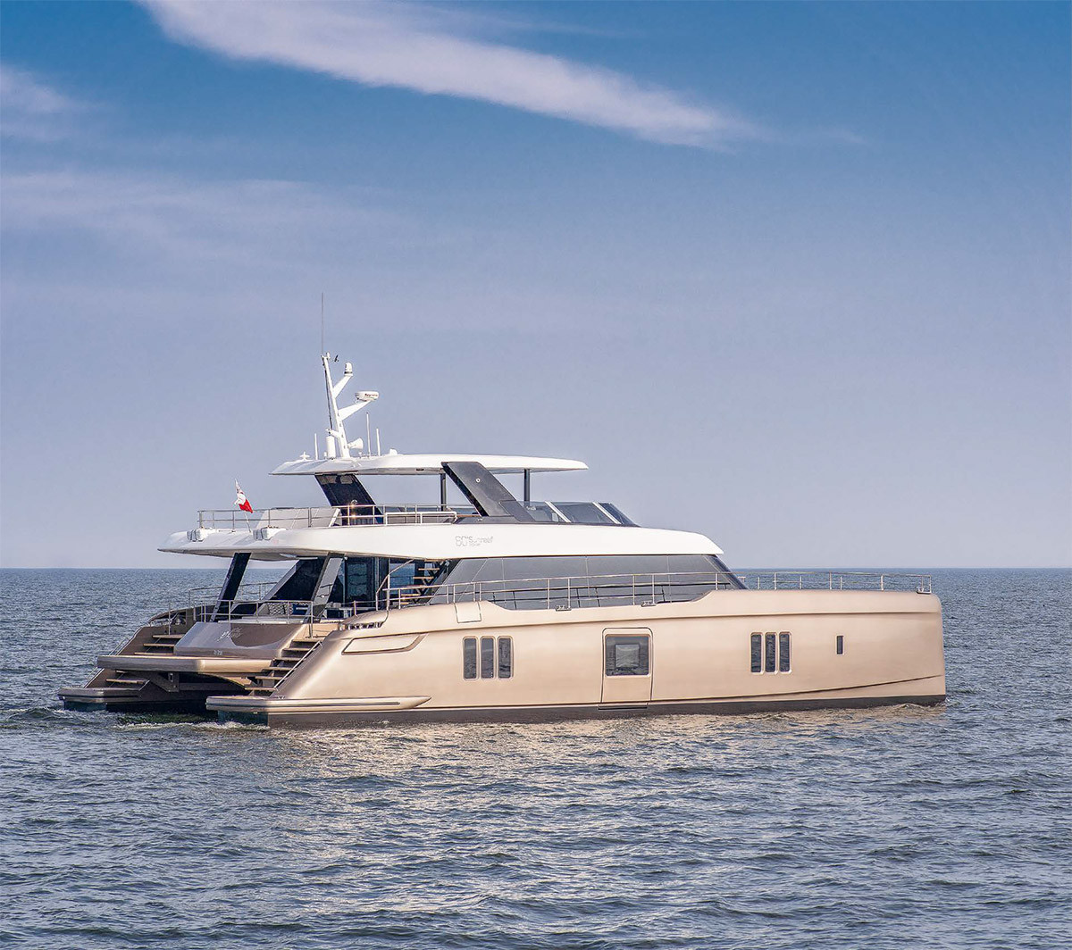 Польская верфь Sunreef Yachts, та самая, где начиналась «Солидарность», известна и как энтузиаст «зеленого» яхтинга, как производство, широко использующее электродвижение и фотоэлектрические панели на своих катамаранах, парусных и моторных. При этом верфь продолжает строить катамараны с двигателями внутреннего сгорания. Один из таких — 80 Sunreef Power.