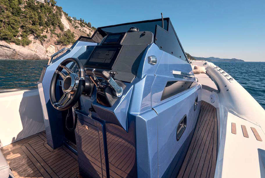 «Обычно крупные RIB’ы вроде GranTurismo 10.5 покупают семьи с детьми, — рассказывает он, пока я изучаю катер. — На них безопасно благодаря крупным баллонам и хорошо защищенному кормовому кокпиту, поэтому пассажиры чувствуют себя уверенно даже на высокой волне. С двумя подвесниками по 300 л.с. GranTurismo 10.5 развивает почти 50 узлов, и сейчас это наша самая продаваемая модель в диапазоне от 10 до 14 м».