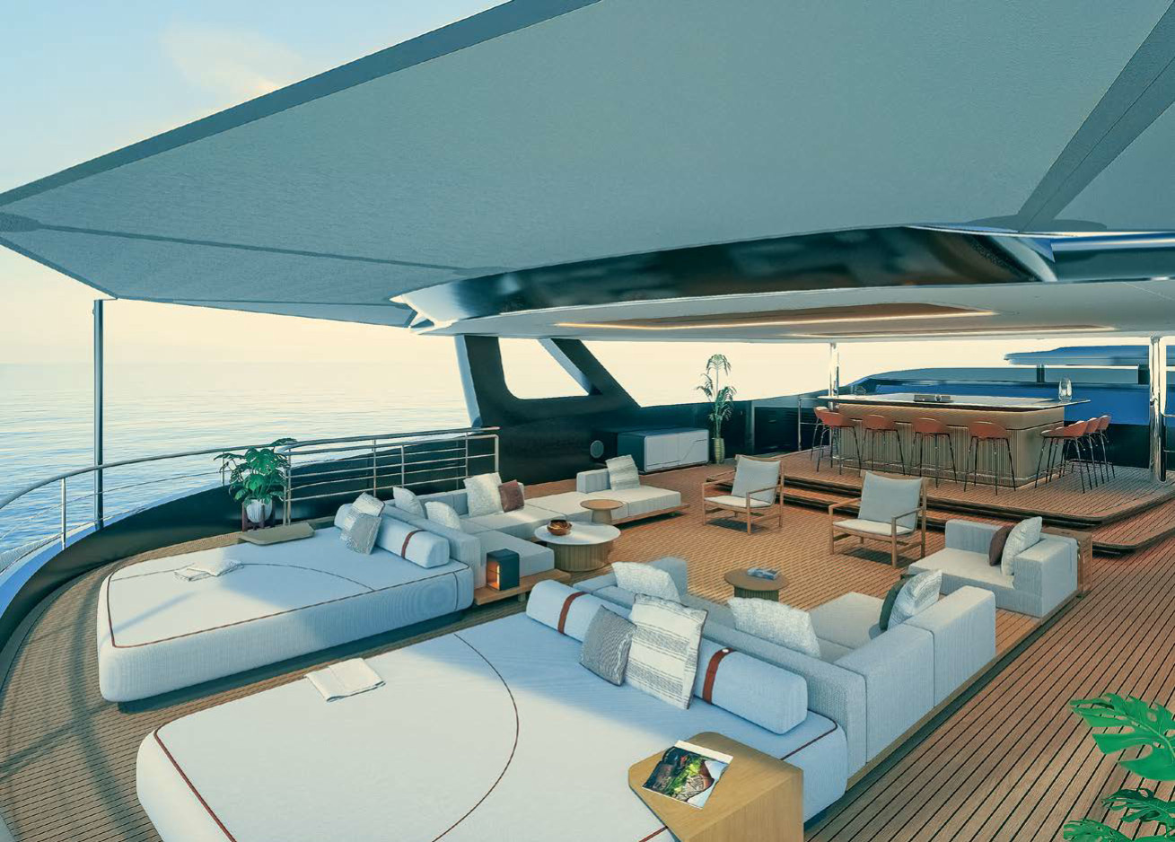 Признаться честно, два года назад этот рассказ показался нам лишь политическим ходом. Такие были времена: каждая верфь говорила об экологичности, стремилась объявить какую‑то программу действий на общей волне движения к отказу от карбонового следа. Название blue label вызывало уж очень сильные ассоциации с известным брендом виски, а озвученная идея о вдохновении верфи морским планктоном, который питается солнечным светом, и вовсе звучала неубедительно. Как хорошо, что мы ошиблись! И еще прекрасней, что есть верфи, которые гораздо сильнее в том, что они делают, нежели в том, что говорят.