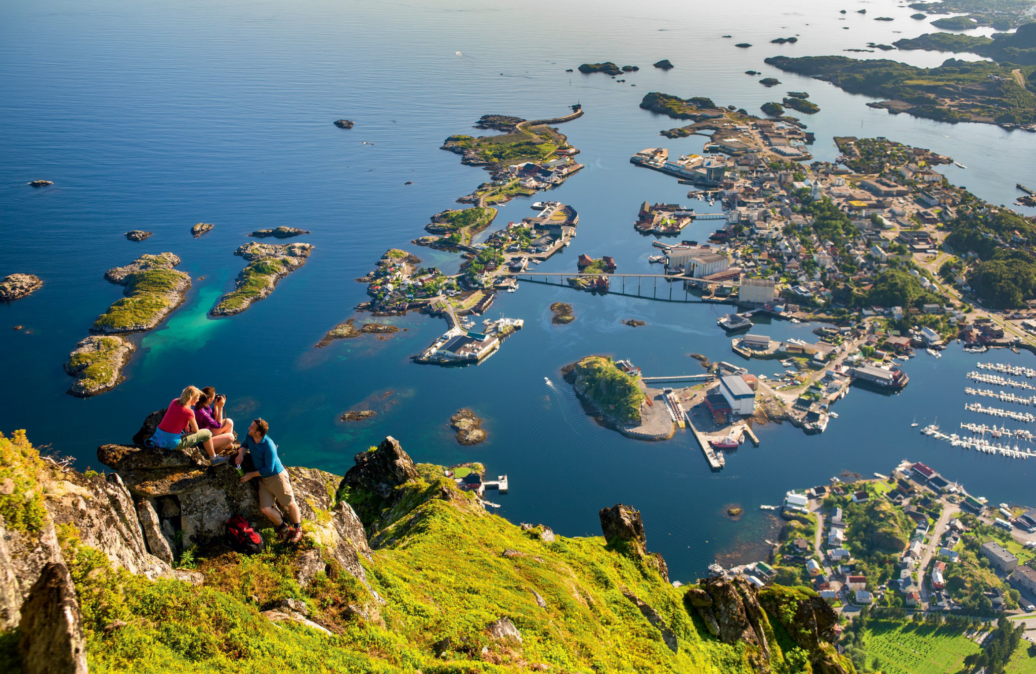 Тупики, гагарки и тонкоклювые кайры нам встречались почти на всем пути до острова Скрова. Хорошо, что мы выбрали маршрут мористее и обошли Свелингсфлакет—большую группу островков и мелей. В этом морском заповеднике гнездится множество птиц, в том числе белохвостый орлан. Навигация там непростая: того и гляди въедешь в камень или мель,—поэтому большим яхтам лучше либо идти морем, либо огибать заповедник вдоль береговой линии острова Хиннёйа по большим глубинам и обозначенным навигационными знаками фарватеру. Тем, кто выбирает морской путь, — бонус: если немного подвернуть к противоположному берегу Вестфьорда, можно полюбоваться на маяк Транёй. Сам Хиннёйа является самым большим прибрежным островом Норвегии; второй по величине—Сенья. Ближе к Скрова с юго-запада пришла волна. Заходим в главную гавань и швартуемся к гостевому понтону, справа от паромной пристани.