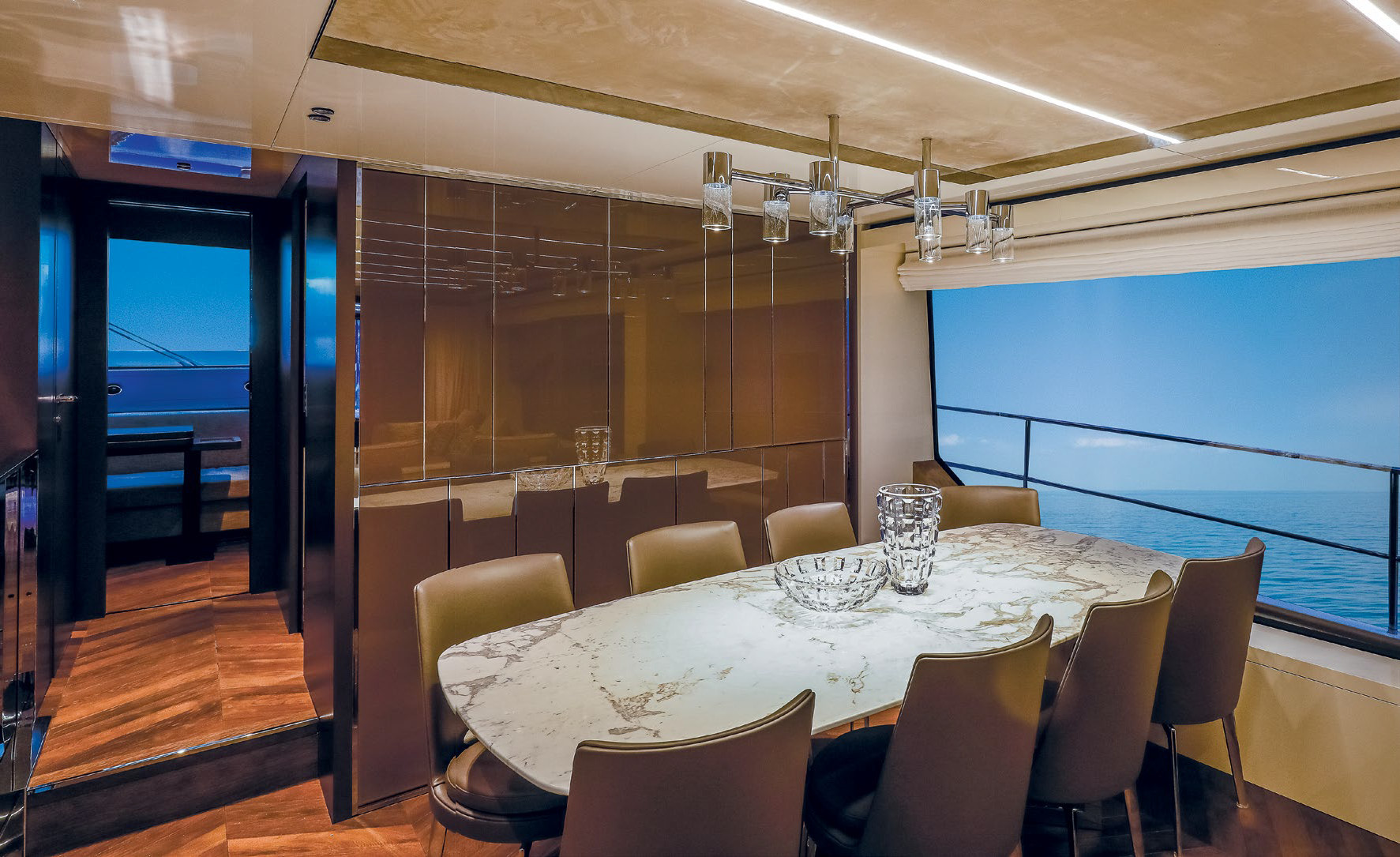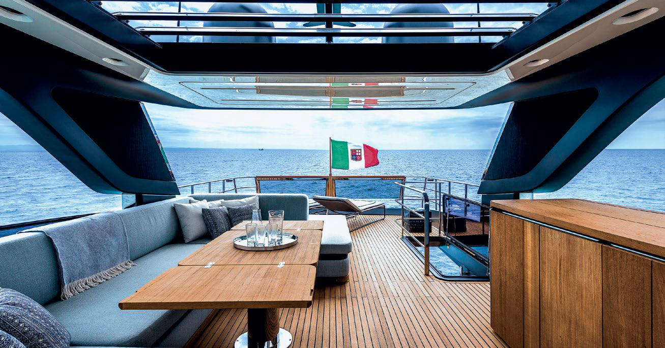 Среди инновационных решений на Cranchi Settantotto одно из важных — это электрические плавниковые стабилизаторы Humphree, на ходу работающие синхронно с интерцепторами этой же марки. Они минимизируют качку на ходу и на якоре, а крен при повороте не превышает полутора градусов, поэтому гостям на борту обеспечено полное спокойствие и безопасность. Сегодня подобное можно встретить только на суперъяхтах.