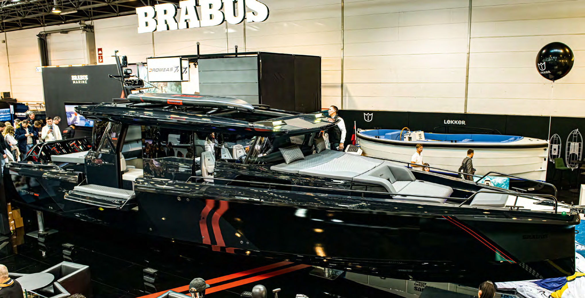 На boot Düsseldorf, открывшей этот сезон европейских яхтенных выставок, стенд Axopar в зале № 4 украшала новинка — Brabus Shadow 1200. Половину первого дня работы бот-шоу лодка интриговала посетителей, так как была скрыта от любопытных взглядов покрывалом. После обеда, когда в присутствии прессы и партнеров Axopar и Brabus ткань сняли под звуки композиции группы AC/DC, катер начал притягивать к себе внимание и фотообъективы глянцевыми черными бортами. С фотообъективами, правда, вышла накладка: в павильоне отполированный до блеска черный корпус никому не удавалось удачно запечатлеть. А нас сразу взволновал вопрос: насколько хлопотно за таким корпусом будет ухаживать? Но владелец и CEO Brabus Константин Бушманн будто почувствовал эти сомнения и поспешил заверить: лодка может быть окрашена в любой цвет, на усмотрение будущего владельца. Что же касается черного стеклопластика Brabus Shadow 1200, который выглядел как карбон (эксклюзивная краска Brabus Graphite Black)… Как только вы слышите название самого известного тюнинг-ателье из Германии, какого цвета автомобиль вы себе представляете? Правильно: черного. Так же решил и владелец первого корпуса новой модели, с нетерпением ждущий момента, когда его лодку доставят на Майорку. Говорят, этот счастливчик был на выставке в Дюссельдорфе и даже прослезился от того, насколько Brabus Shadow 1200 превзошел его ожидания. Поспешили на борт и мы.